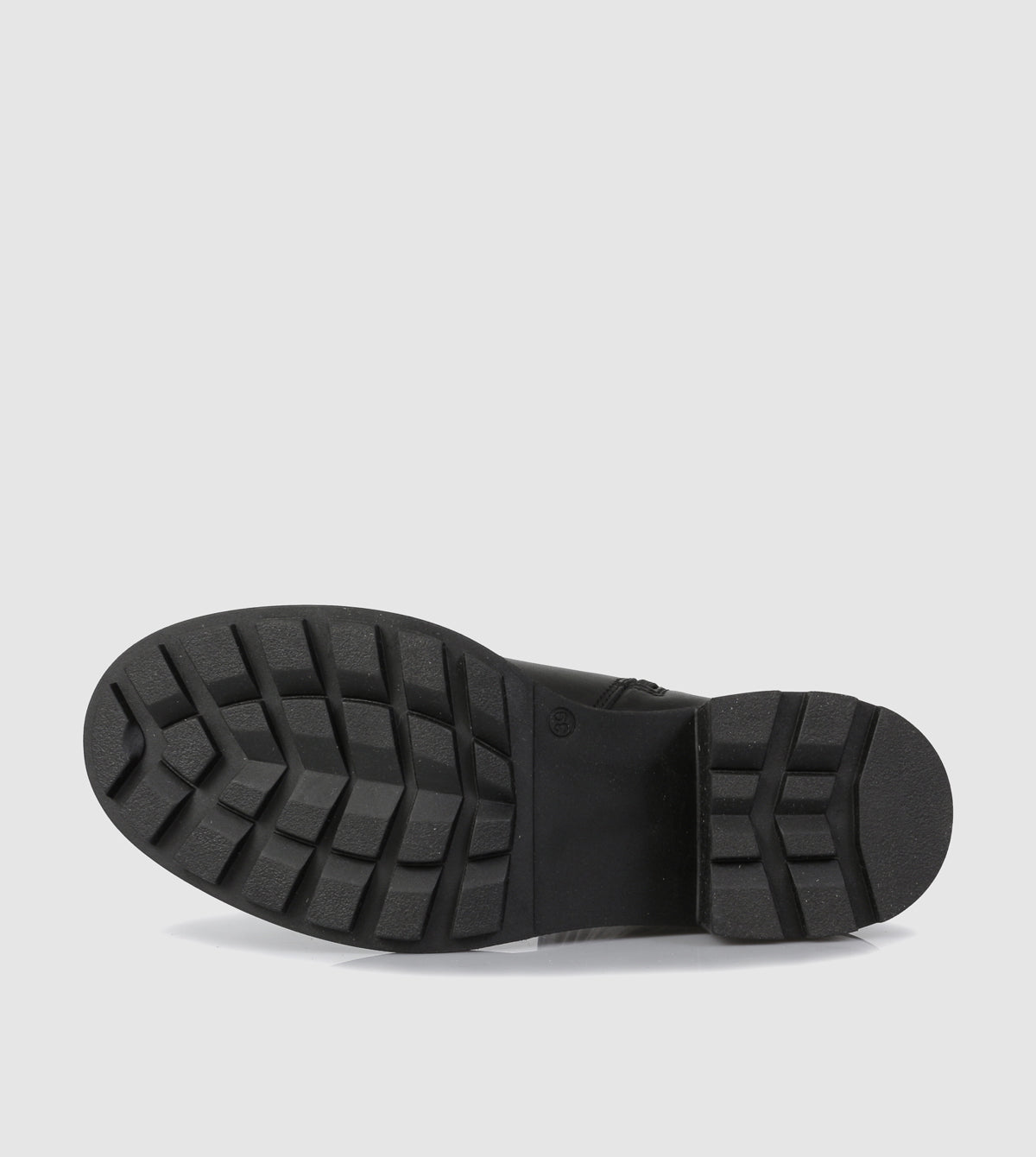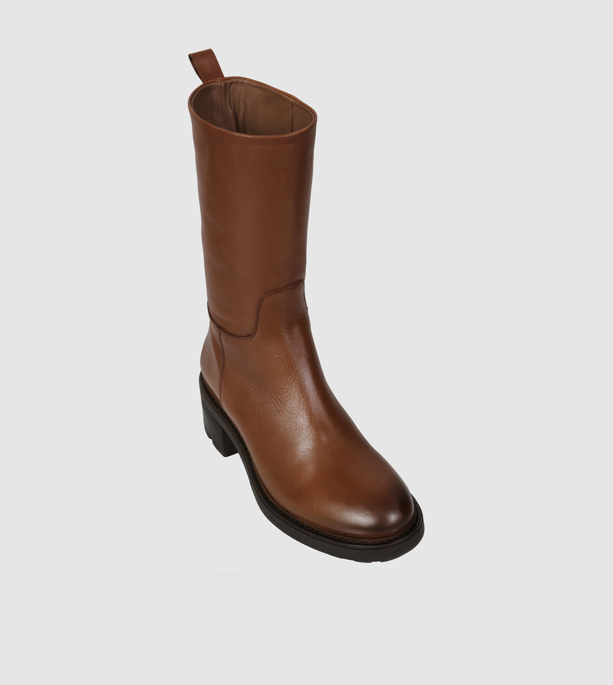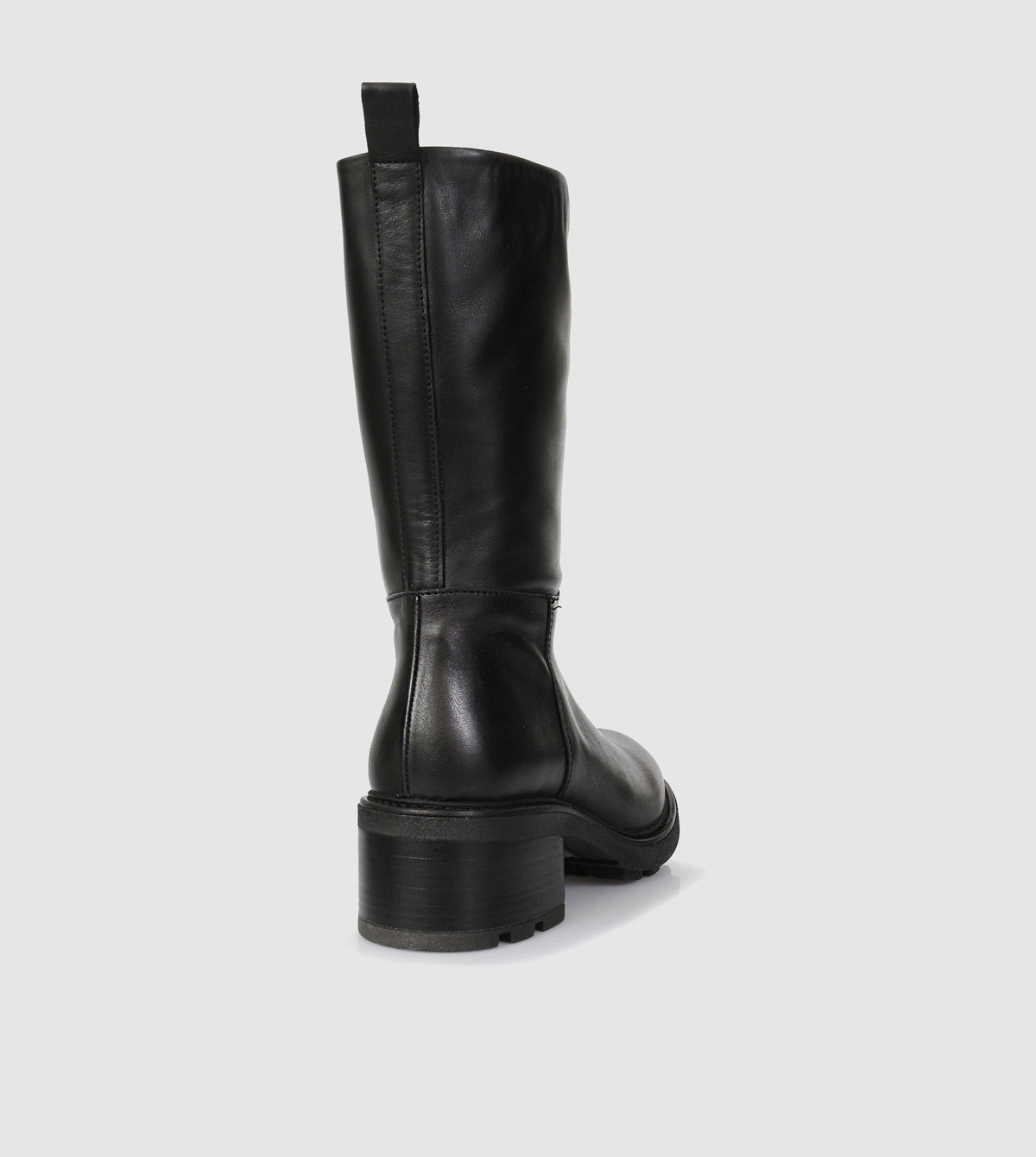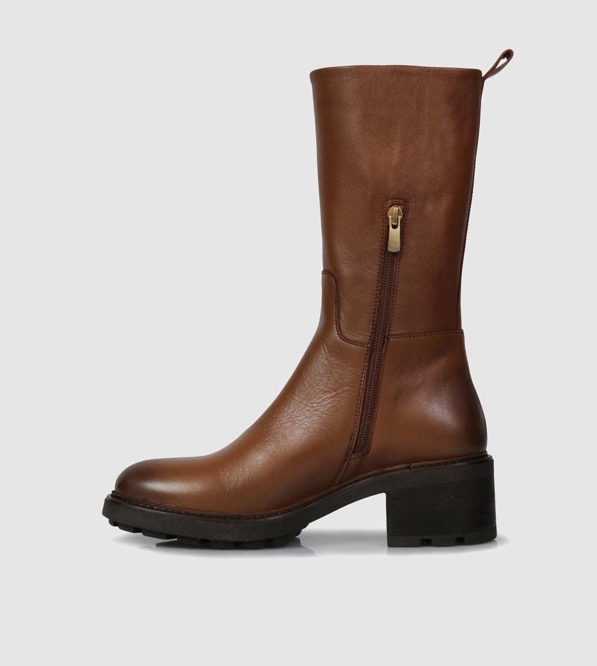 Expertly crafted with polished leather, the Yula Mid Calf Boots by Sempre di feature a bold rounded toe and a cleated rubber sole for added traction. The sturdy block heel provides comfort and style, while the internal zip allows for easy on and off. Elevate any outfit with these versatile biker boots.