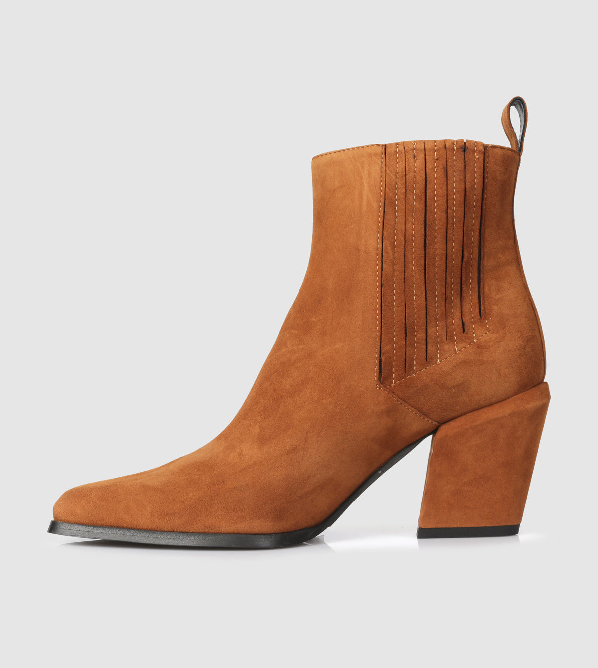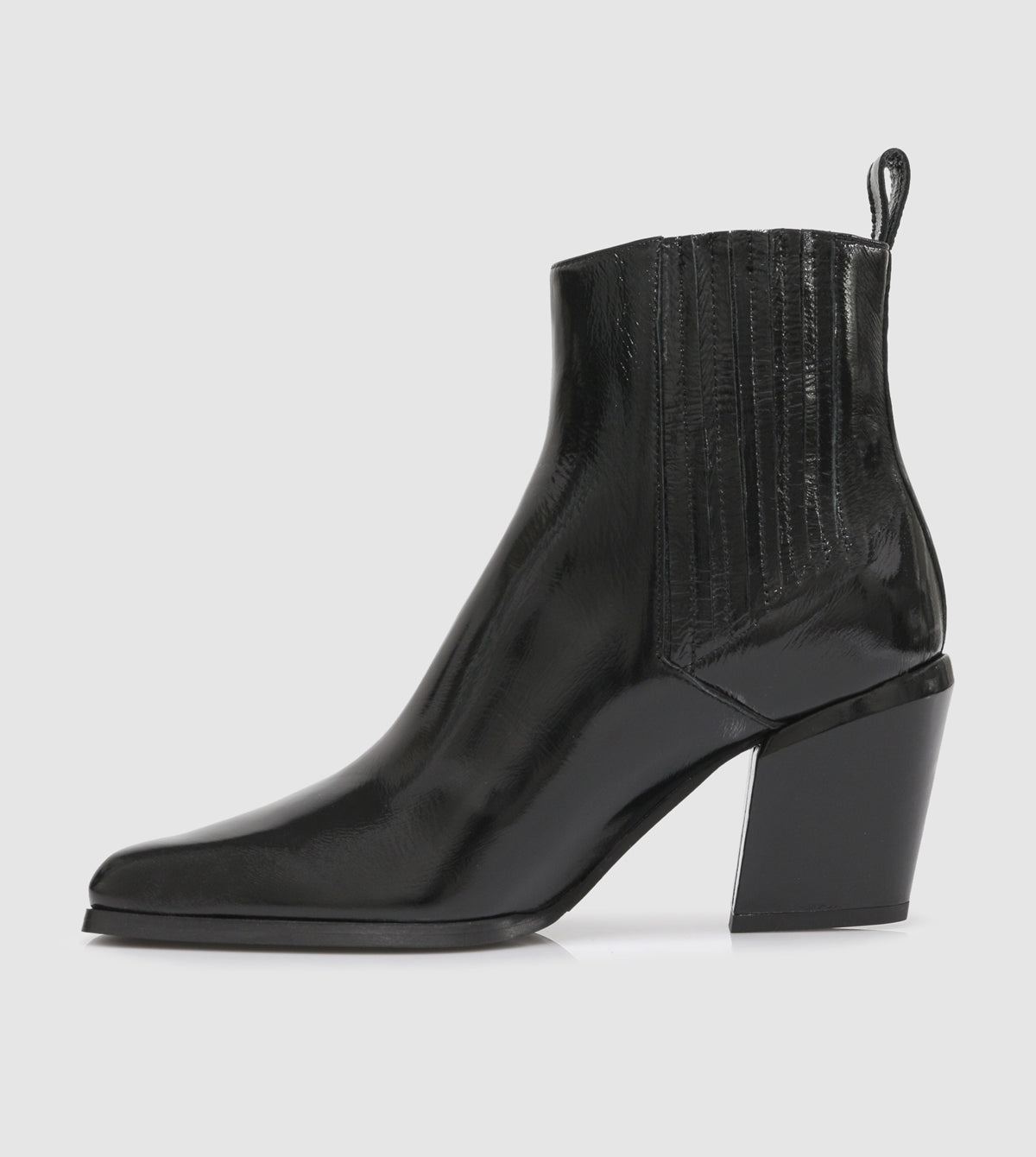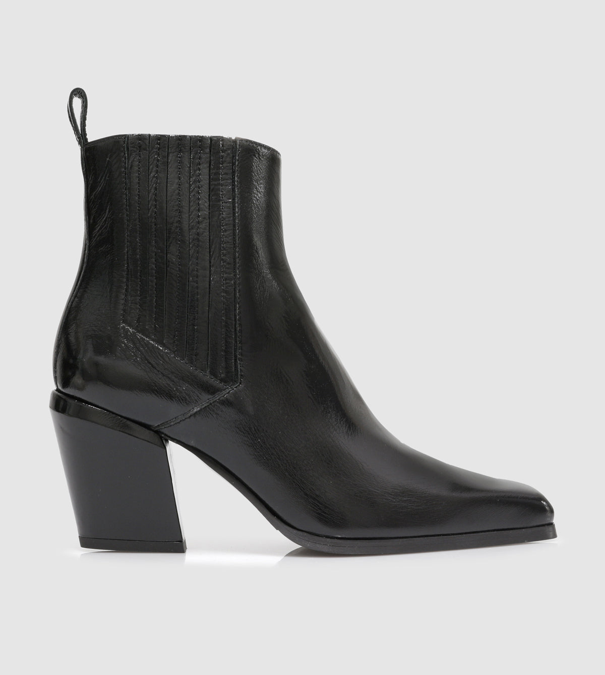 Crafted in Italy, the Libby Ankle Boots by Beau Coops feature an elongated chisel toe and a unique Cuban-sculptured 7 cm heel, adding a touch of western style to any outfit. Choose from suede or patent options for a cool winter look.