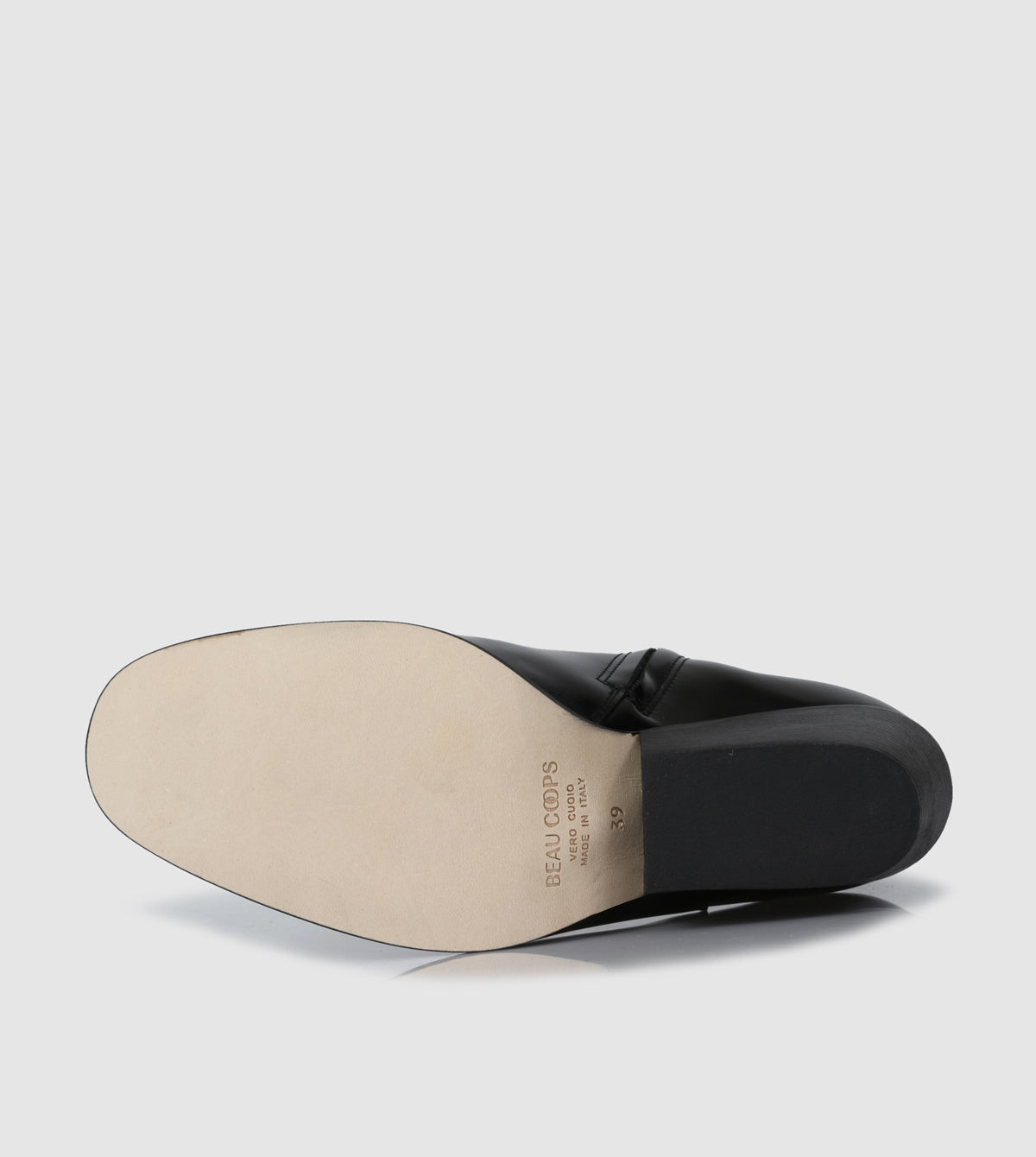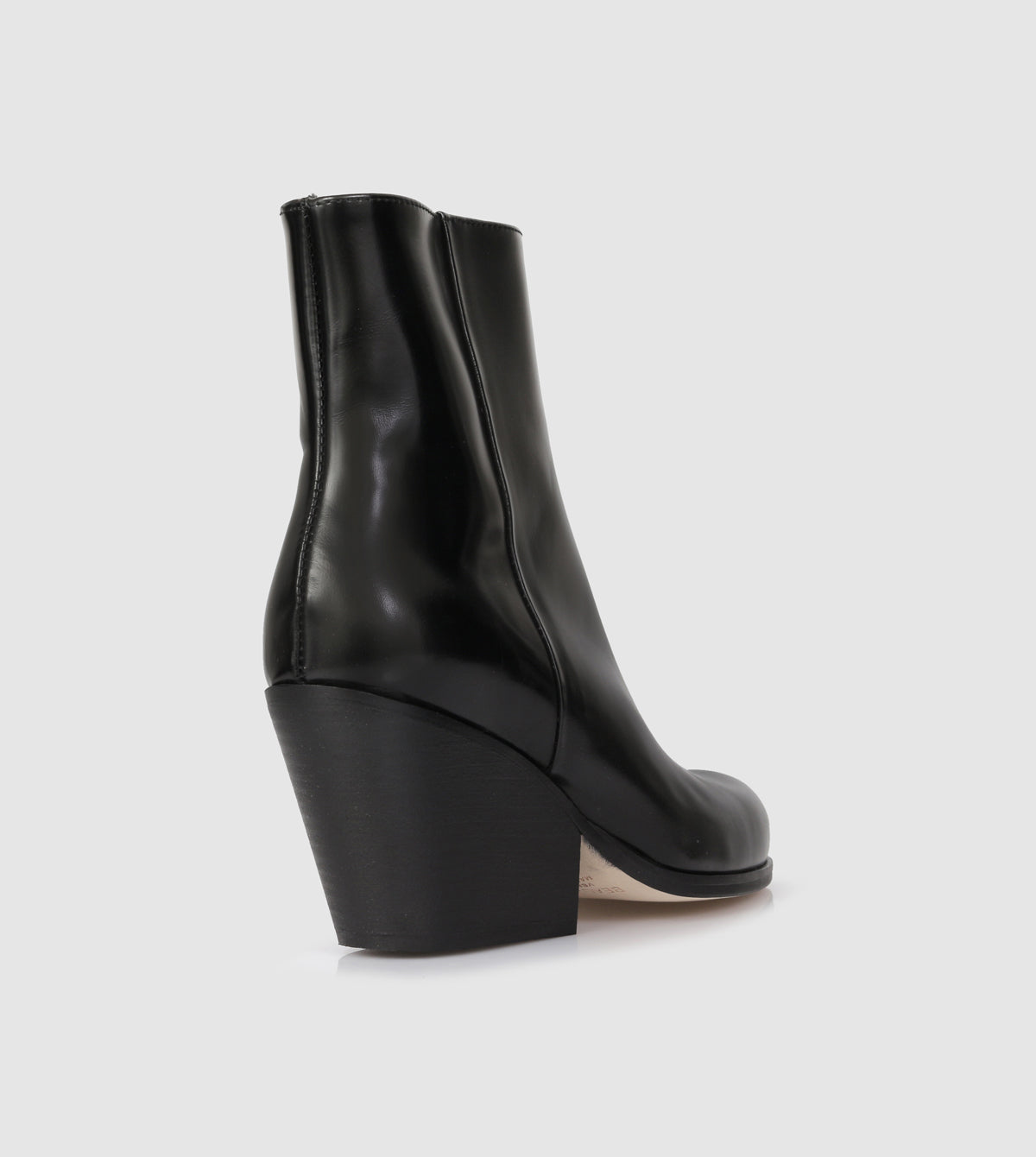 Crafted in Italy from high shine calf leather, the Ganne Ankle Boots by Beau Coops feature an oversized Cuban heel and a snubbed toe for a unique and stylish look. With an internal zip for easy wear, these boots are the perfect combination of fashion and functionality.