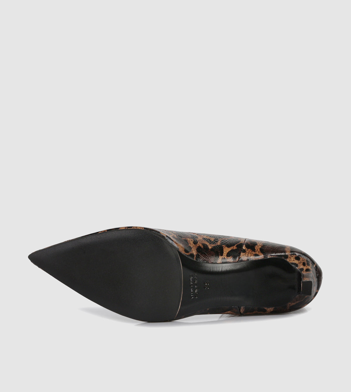 - Premium high-shine leather upper in a bold Tan Leopard print