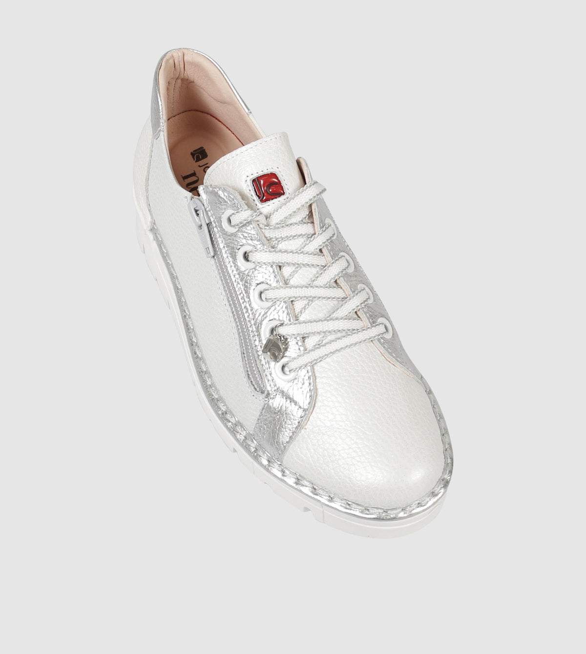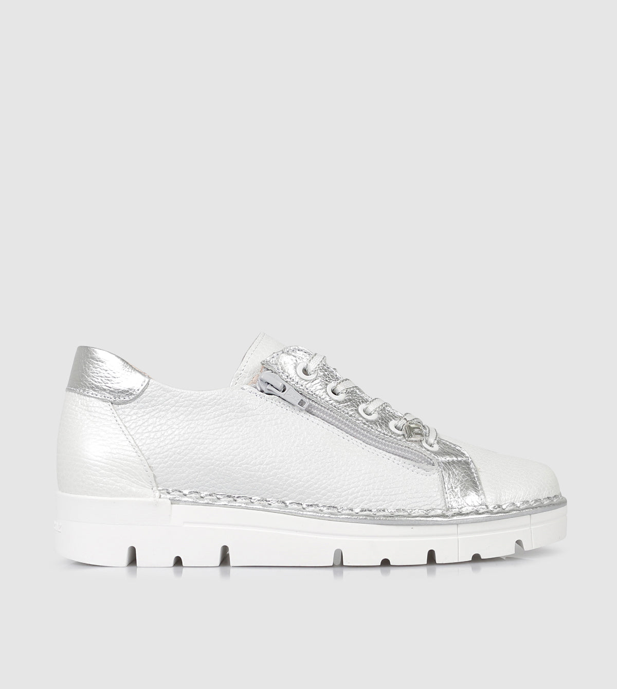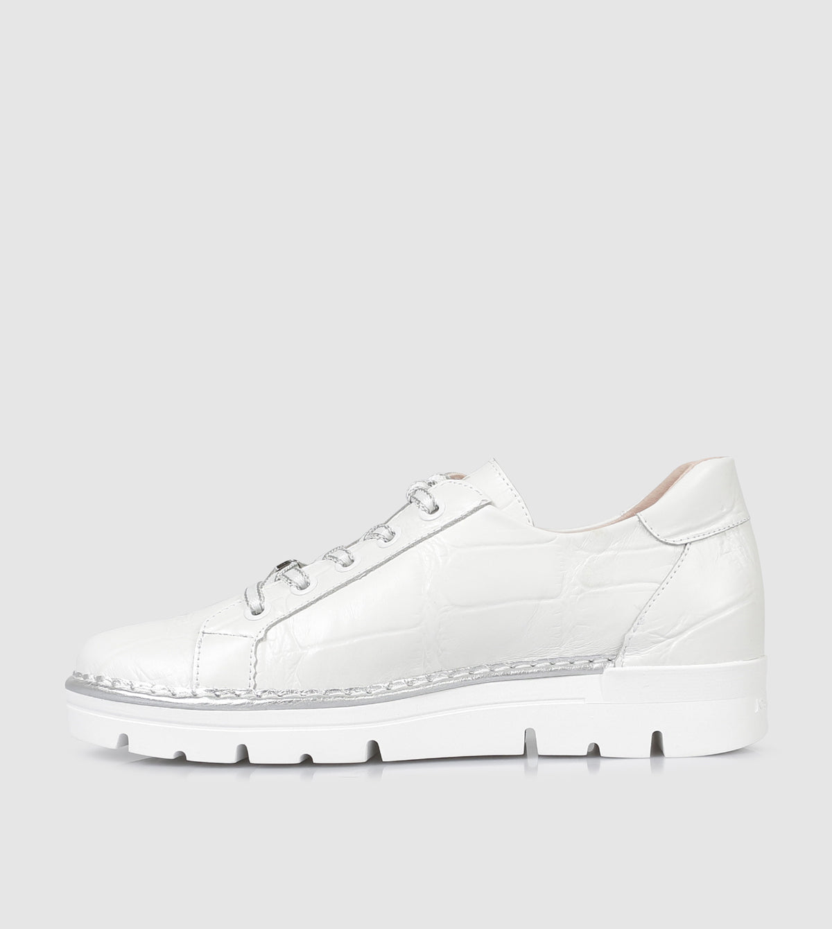 The Dersey Low Top Sneakers by Neo blend sporty ease with polished detail. Made from textured white leather with a subtle croc-embossed finish, these sneakers feature a chunky sole, silver accents, and a side zip for extra convenience. Perfect for off-duty dressing or elevated casual looks, Dersey delivers all-day comfort with a standout edge.