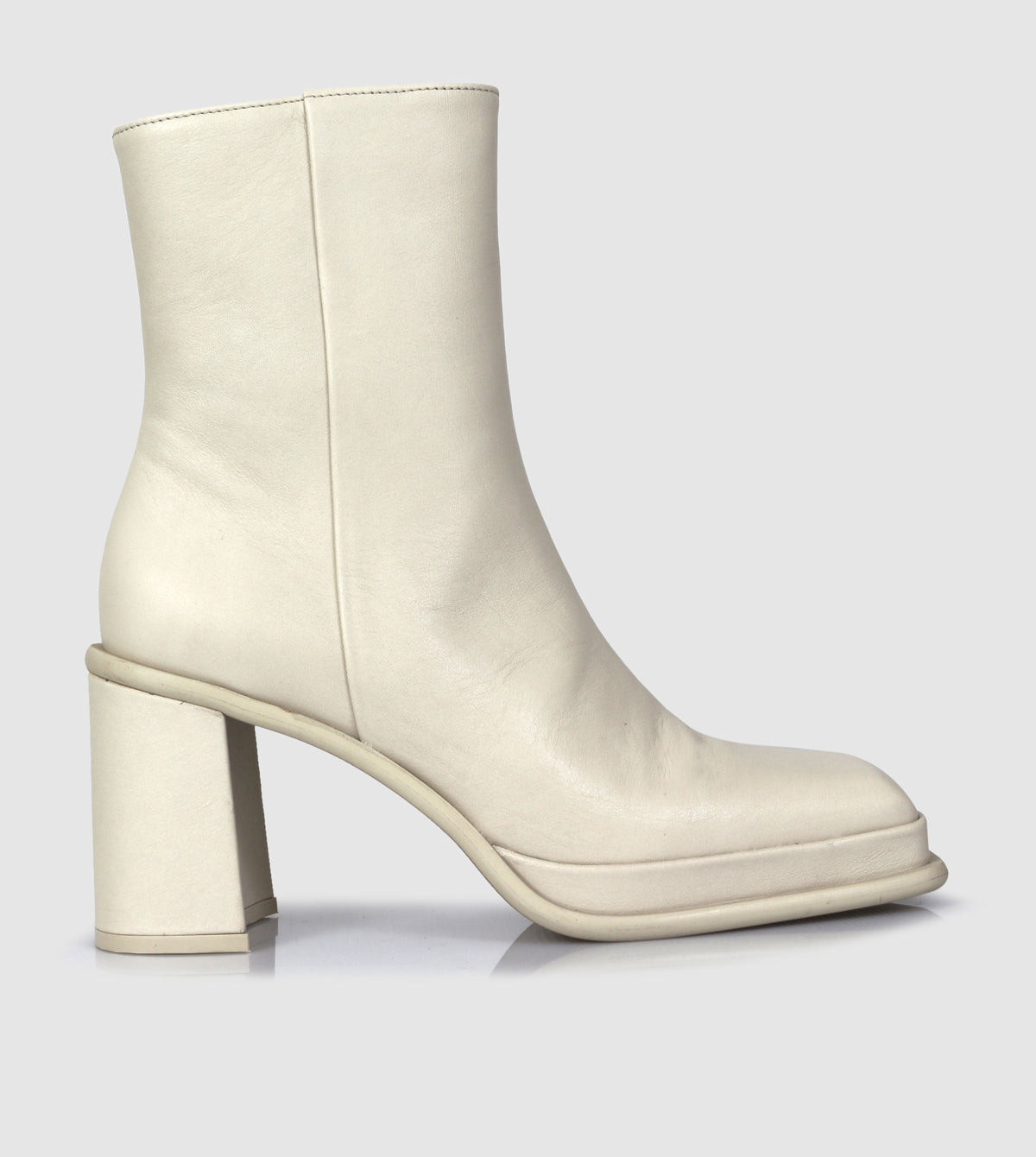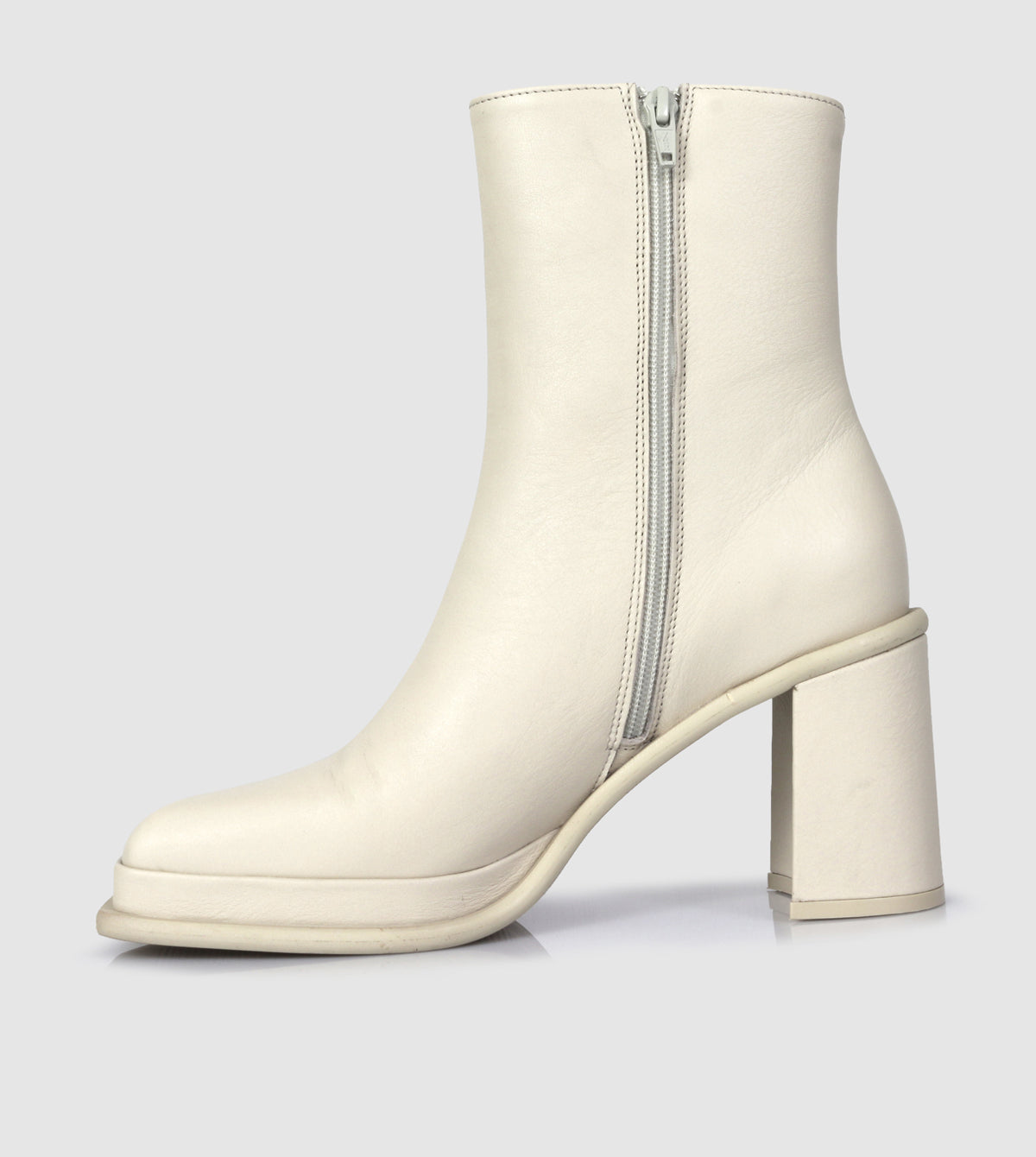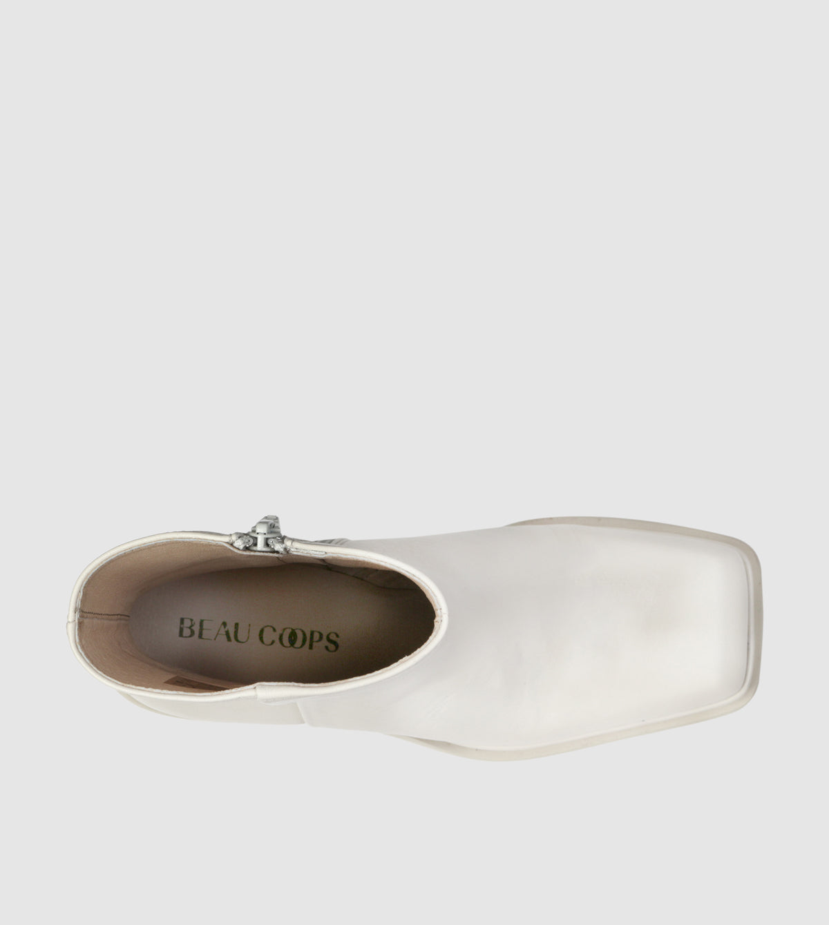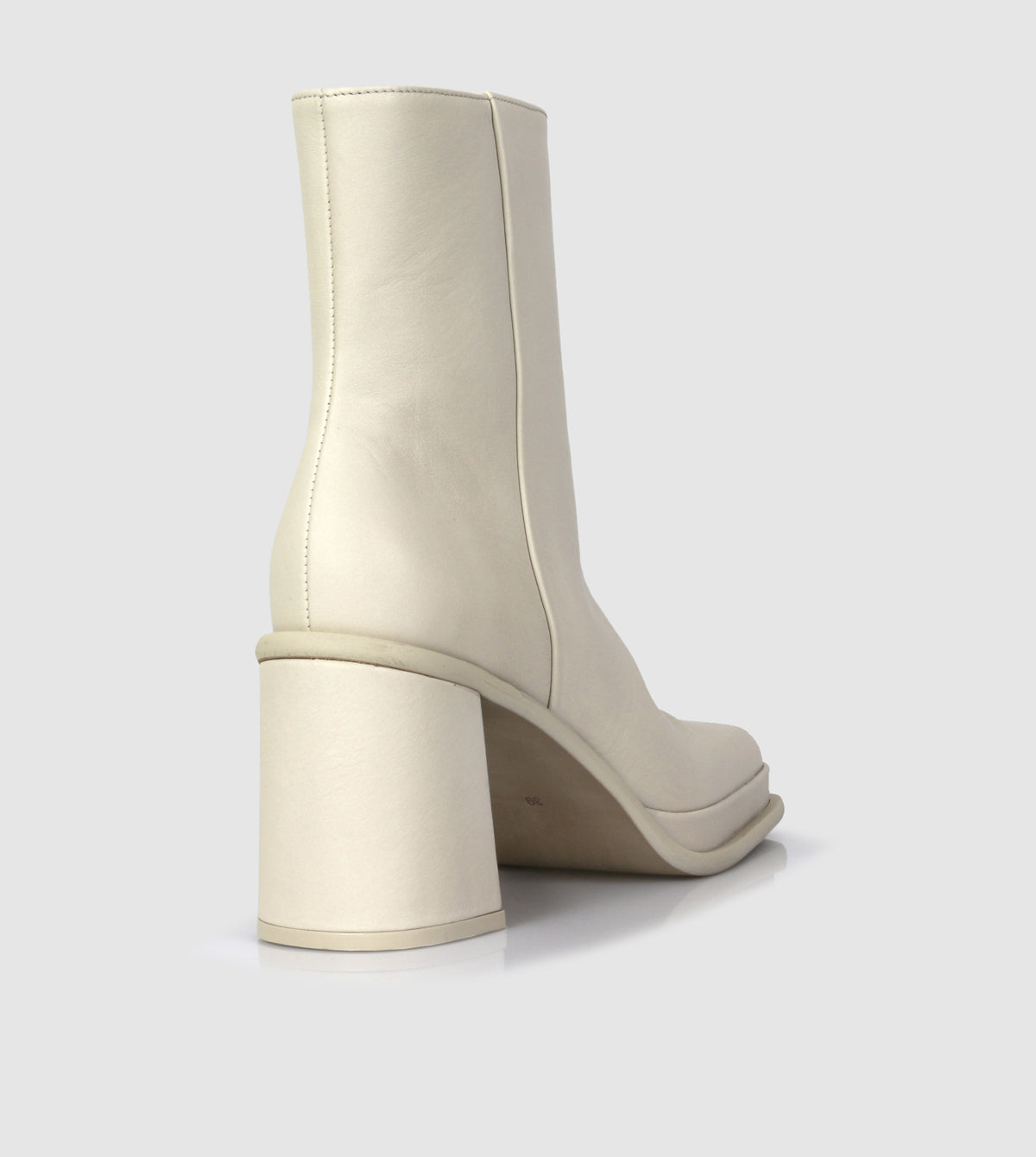 Crafted from supple calf leather with a smooth mat finish, Deonisia Ankle Boots by Beau Coops are both directional and fashion forward. The squared sculptured toes and 2 cm platform elevate the style, while the 8cm block heel provides comfort for all-day wear. Available in winter white or Black for a chic, modern look.