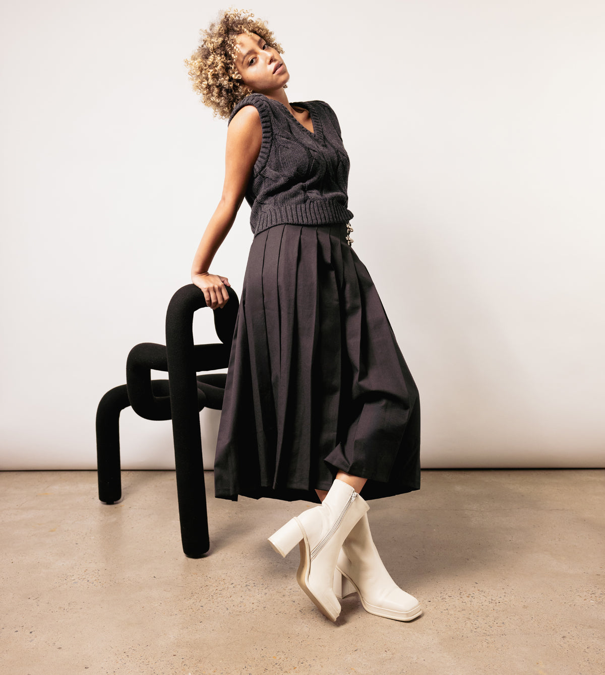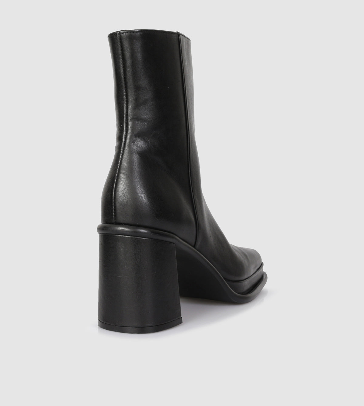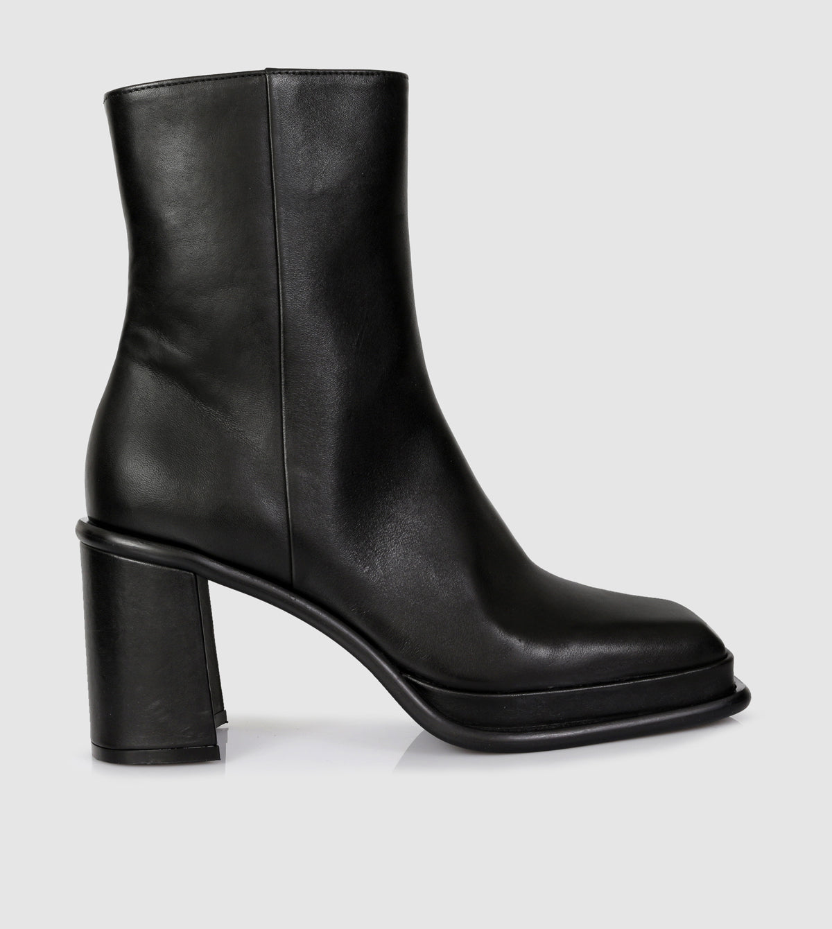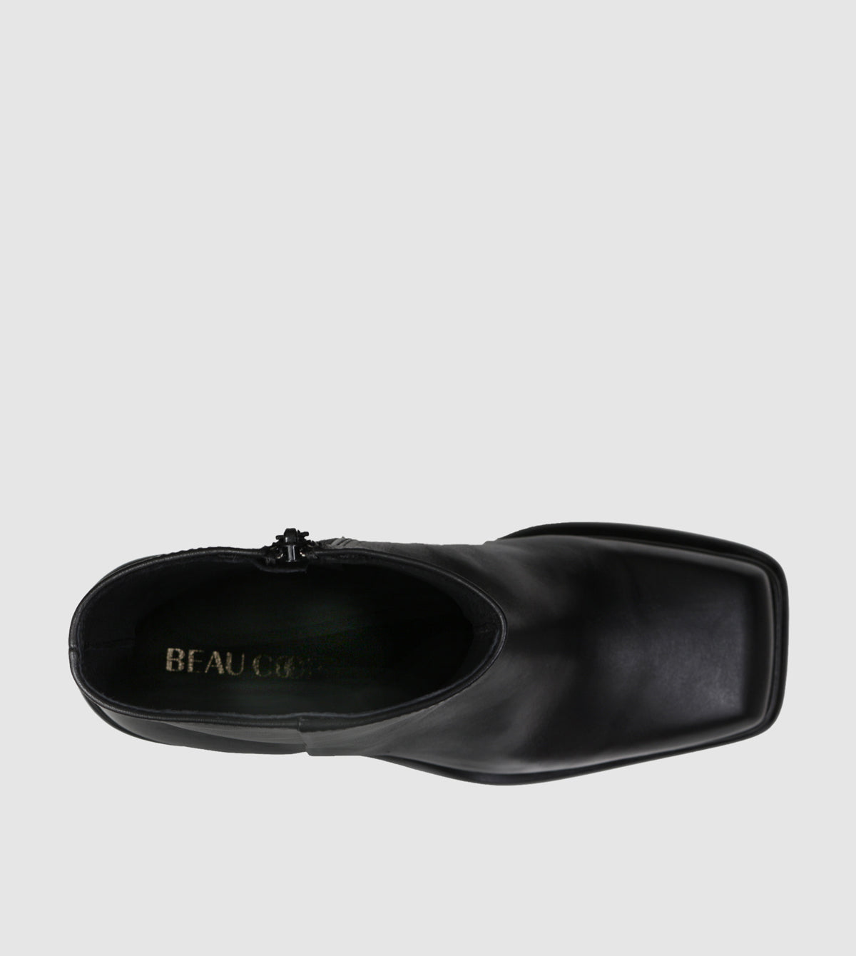 Crafted from supple calf leather with a smooth mat finish, Deonisia Ankle Boots by Beau Coops are both directional and fashion forward. The squared sculptured toes and 2 cm platform elevate the style, while the 8cm block heel provides comfort for all-day wear. Available in winter white or Black for a chic, modern look.