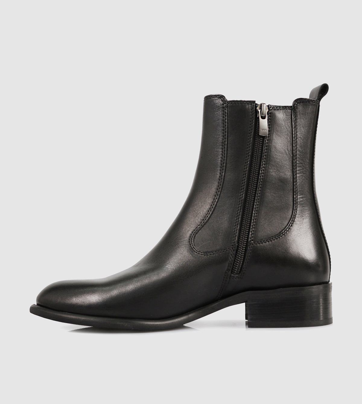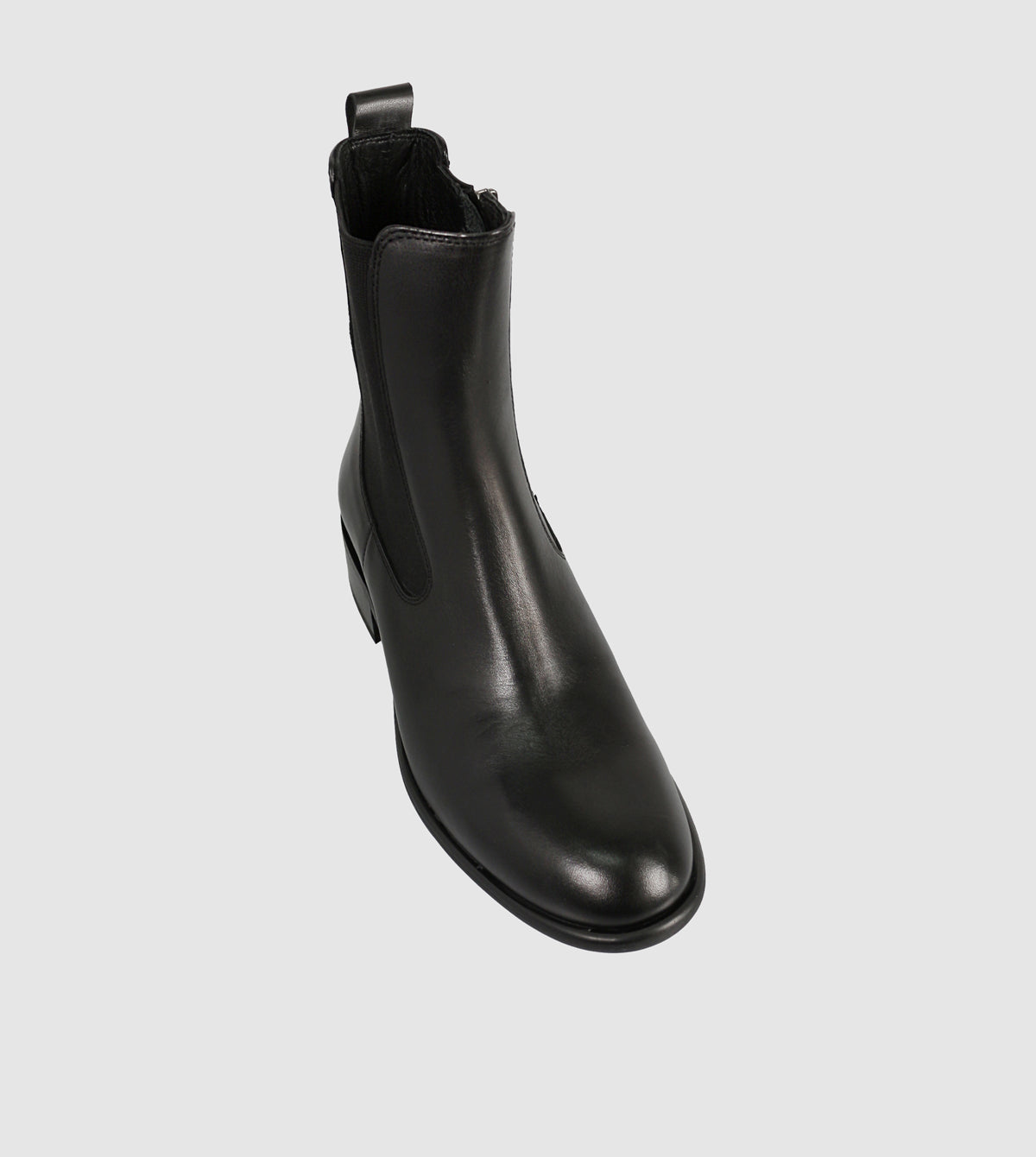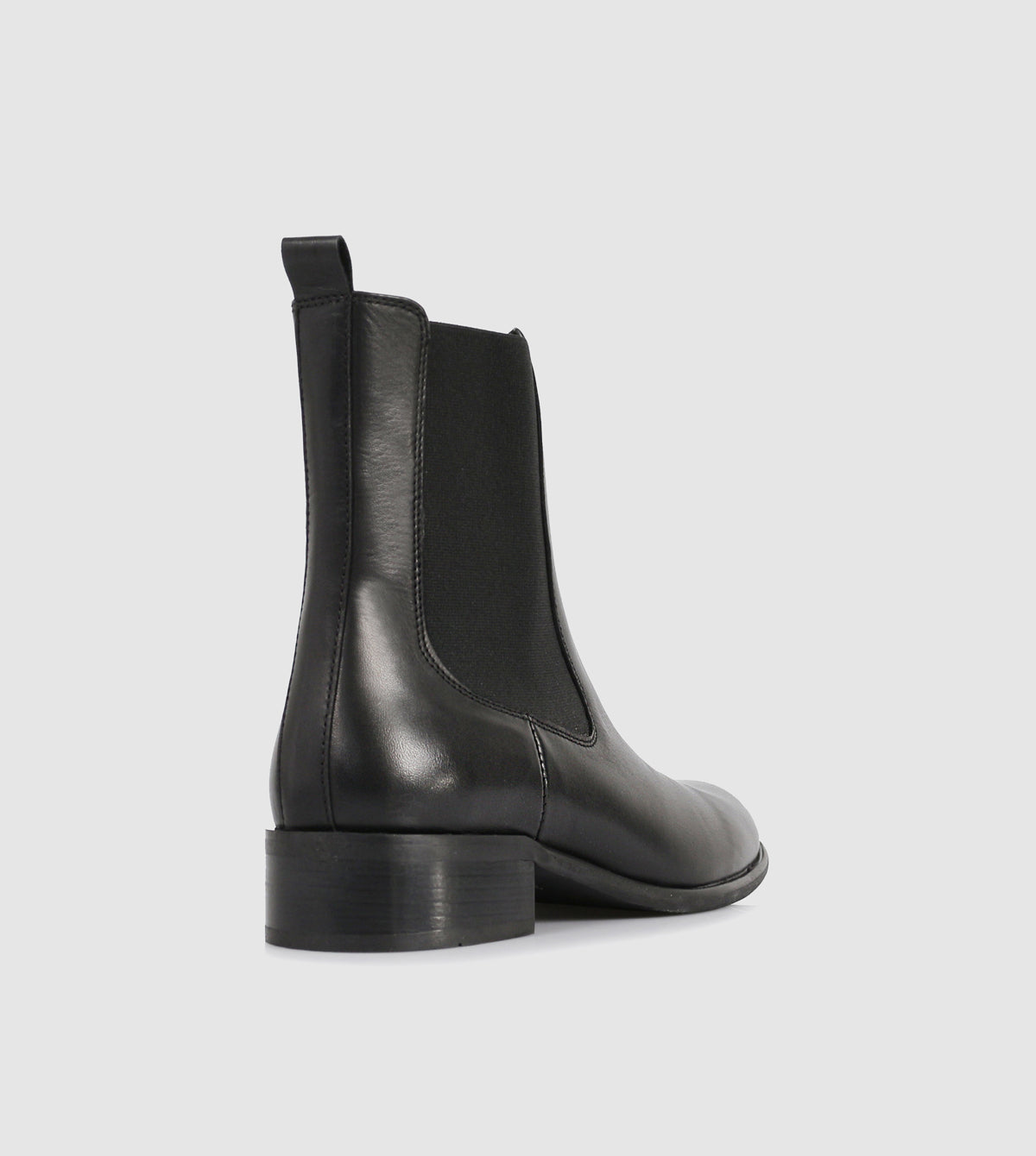 The Laney Chelsea Boots by Sempre Di offer a sleek and timeless take on a wardrobe classic. Crafted from premium leather, these boots feature a streamlined Chelsea silhouette with elastic side panels for a snug yet flexible fit. The polished finish enhances their refined look, while the pull tab at the back ensures easy slip-on wear. A durable sole and low stacked heel provide lasting comfort and stability, making them perfect for everyday wear.