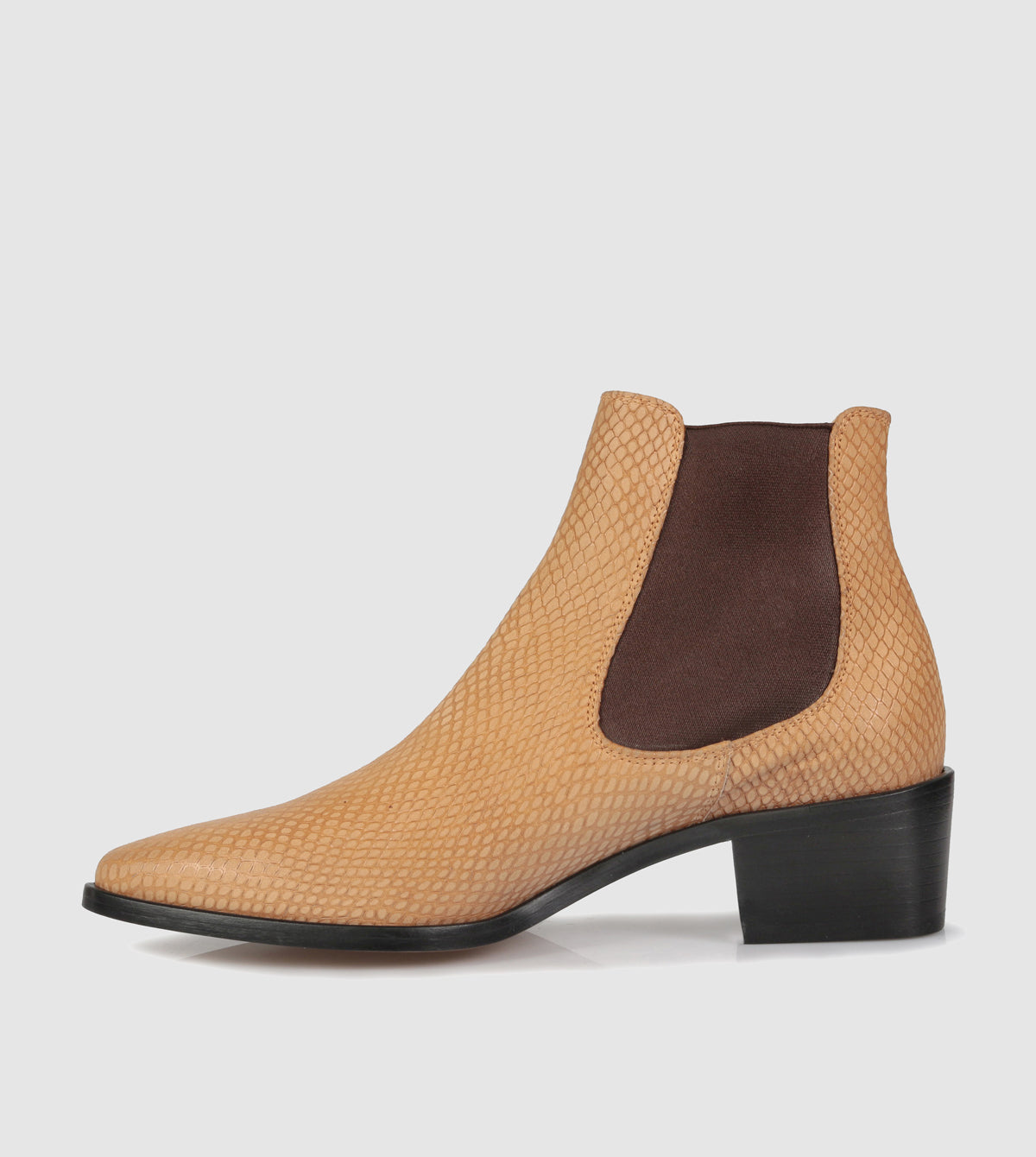 The Beau Coops Lumier Ankle Boots strike the perfect balance between timelessness and trending. Made in Italy from supple premium calf leather, these western inspired chelsea boots feature elastic side gussets, pointed toe and leather stacked heel.
