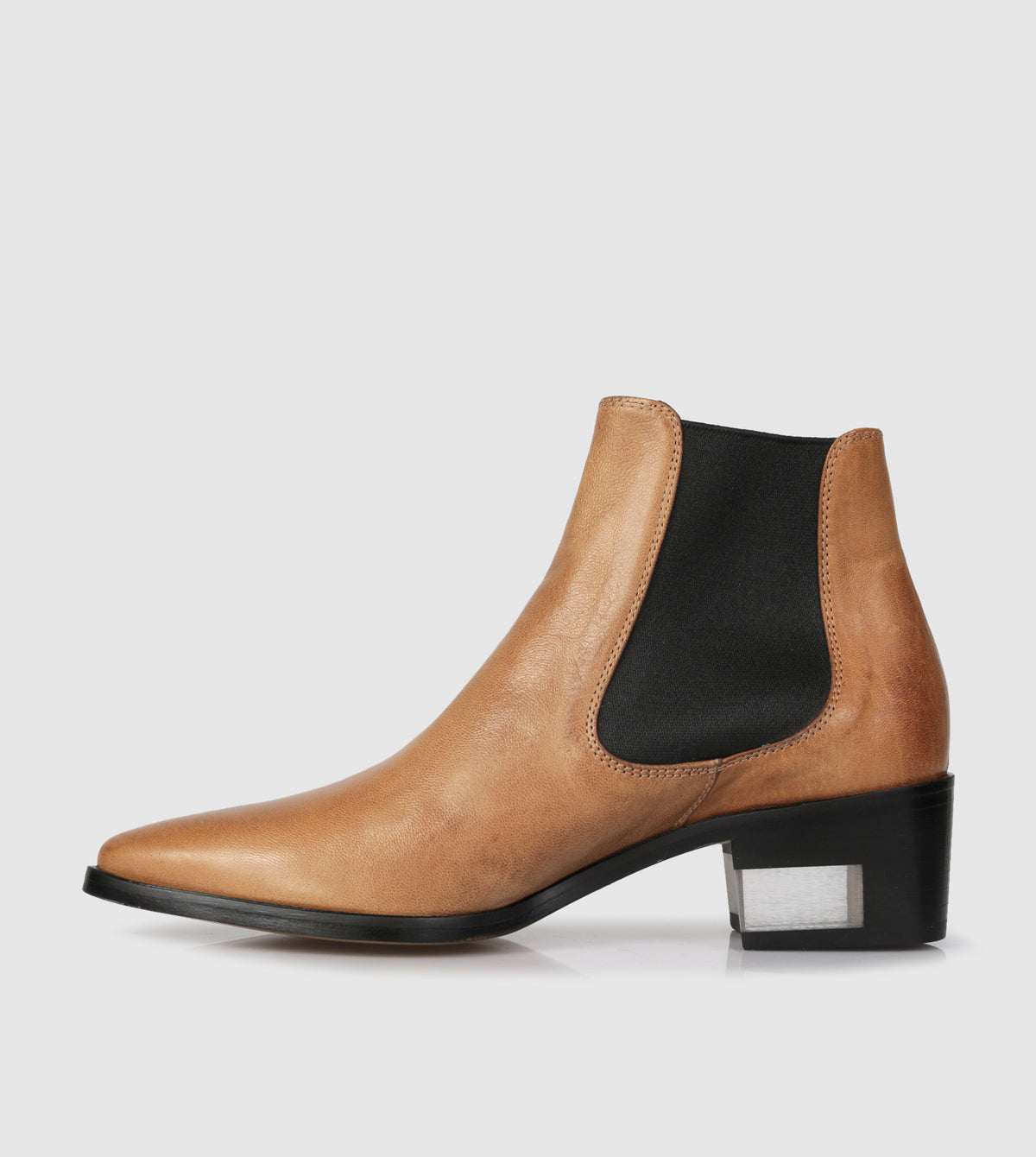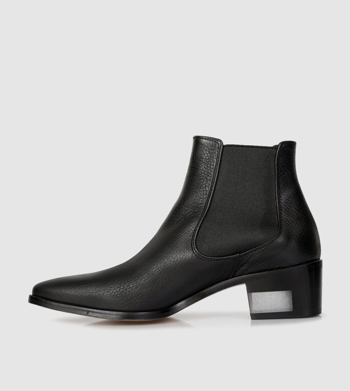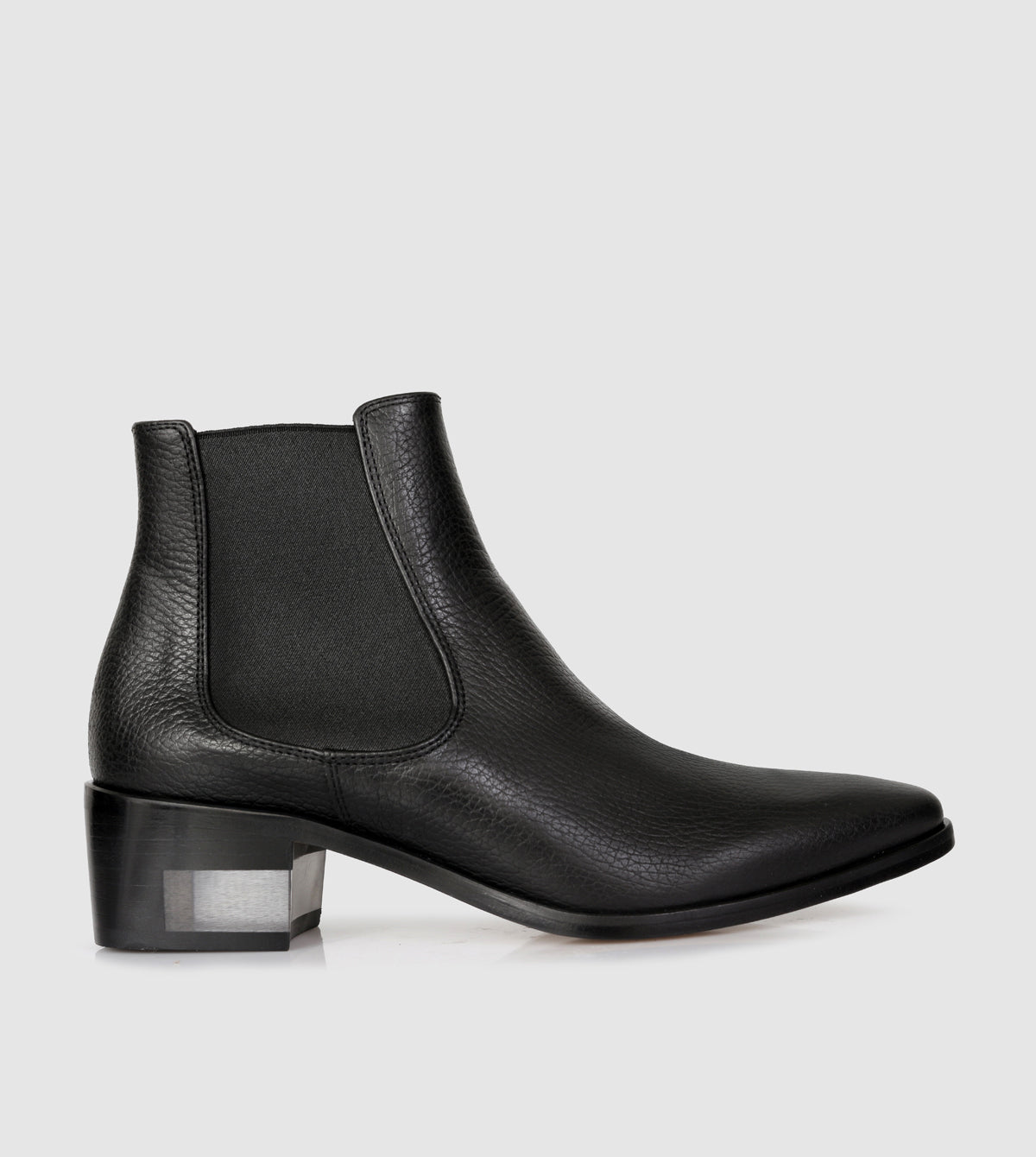 - Leather stacked heel