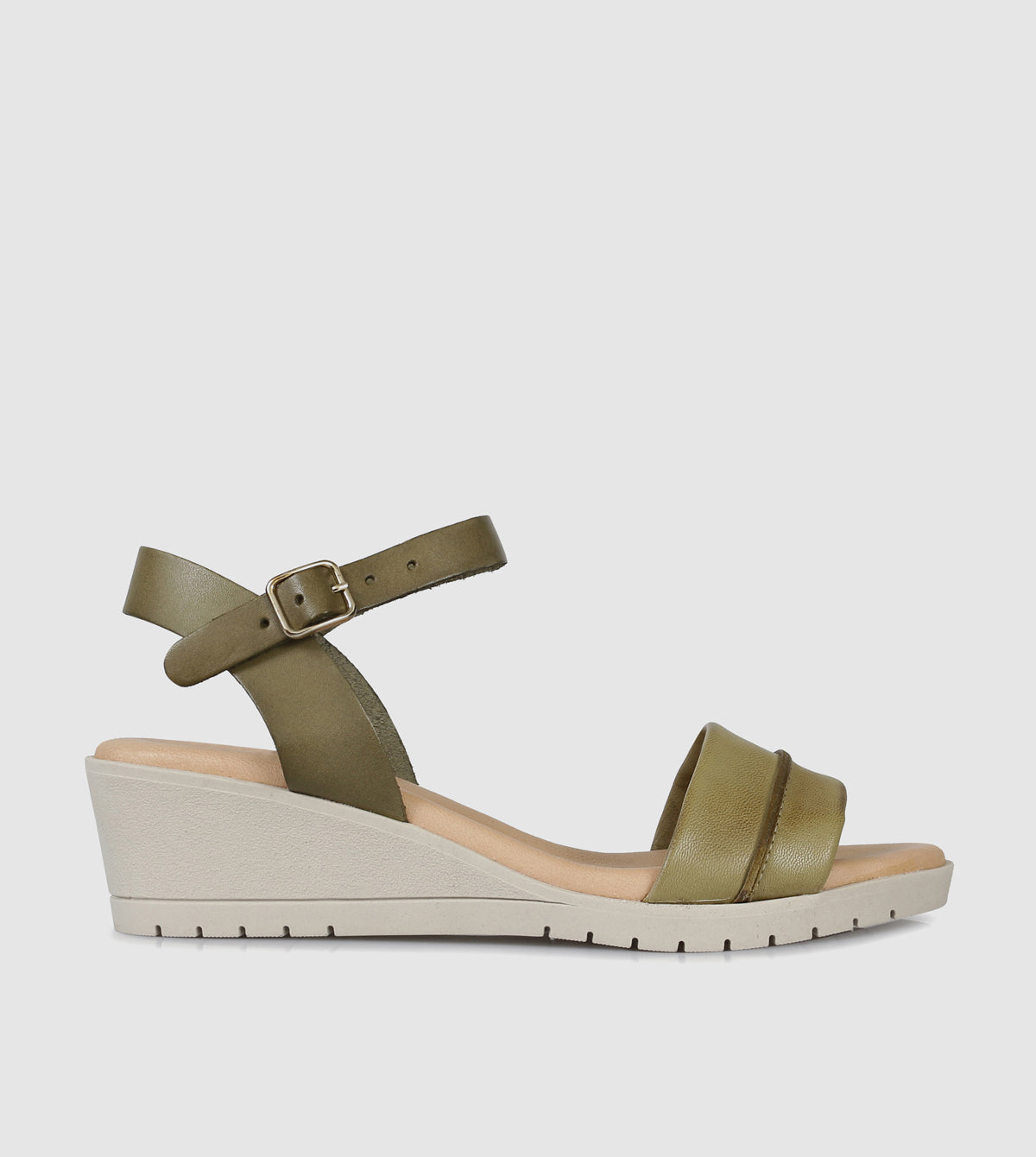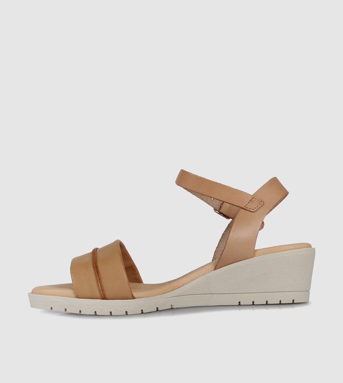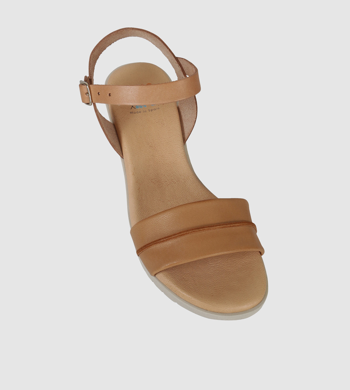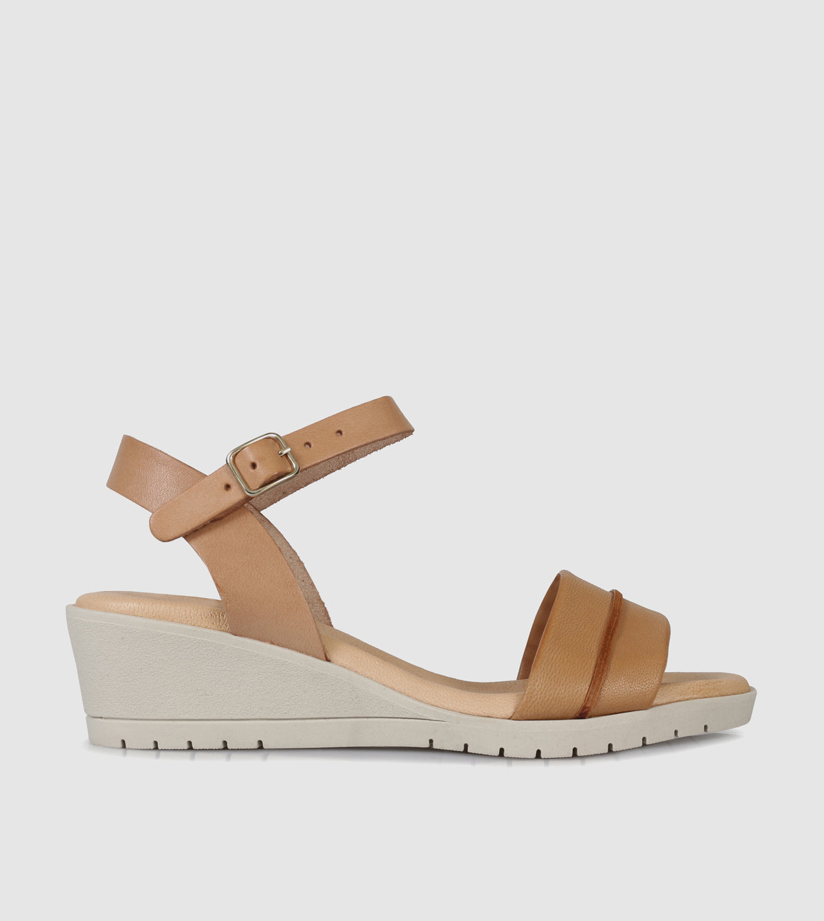 Introducing the Briel wedge sandal by Neo, a collaboration between NU and Neo, crafted with precision in Spain. Featuring a soft camel or khaki leather upper, it includes a comfortable mid-height wedge and a secure ankle strap with an adjustable buckle. The design is minimal yet sophisticated, perfect for both casual and dressy summer occasions.