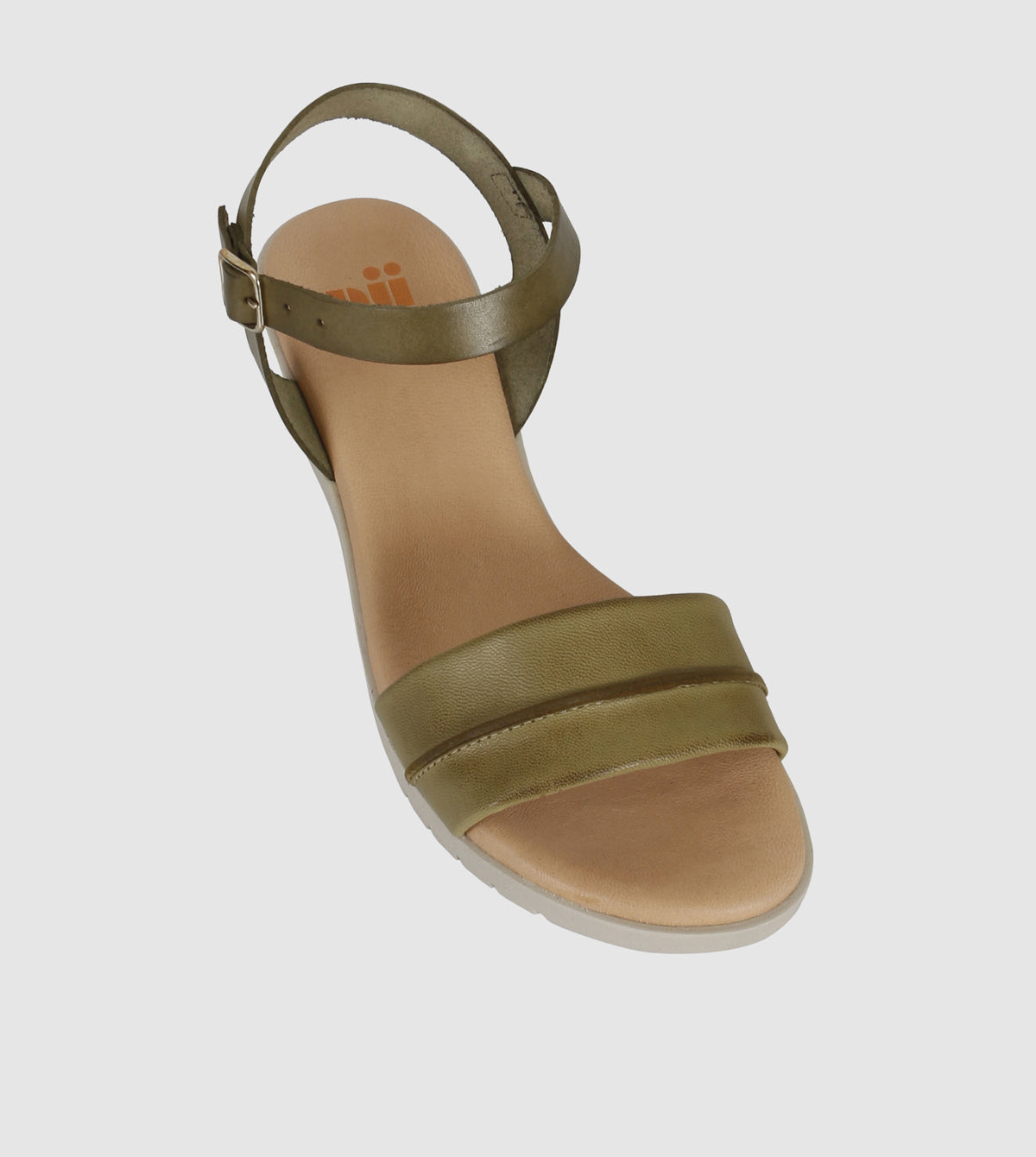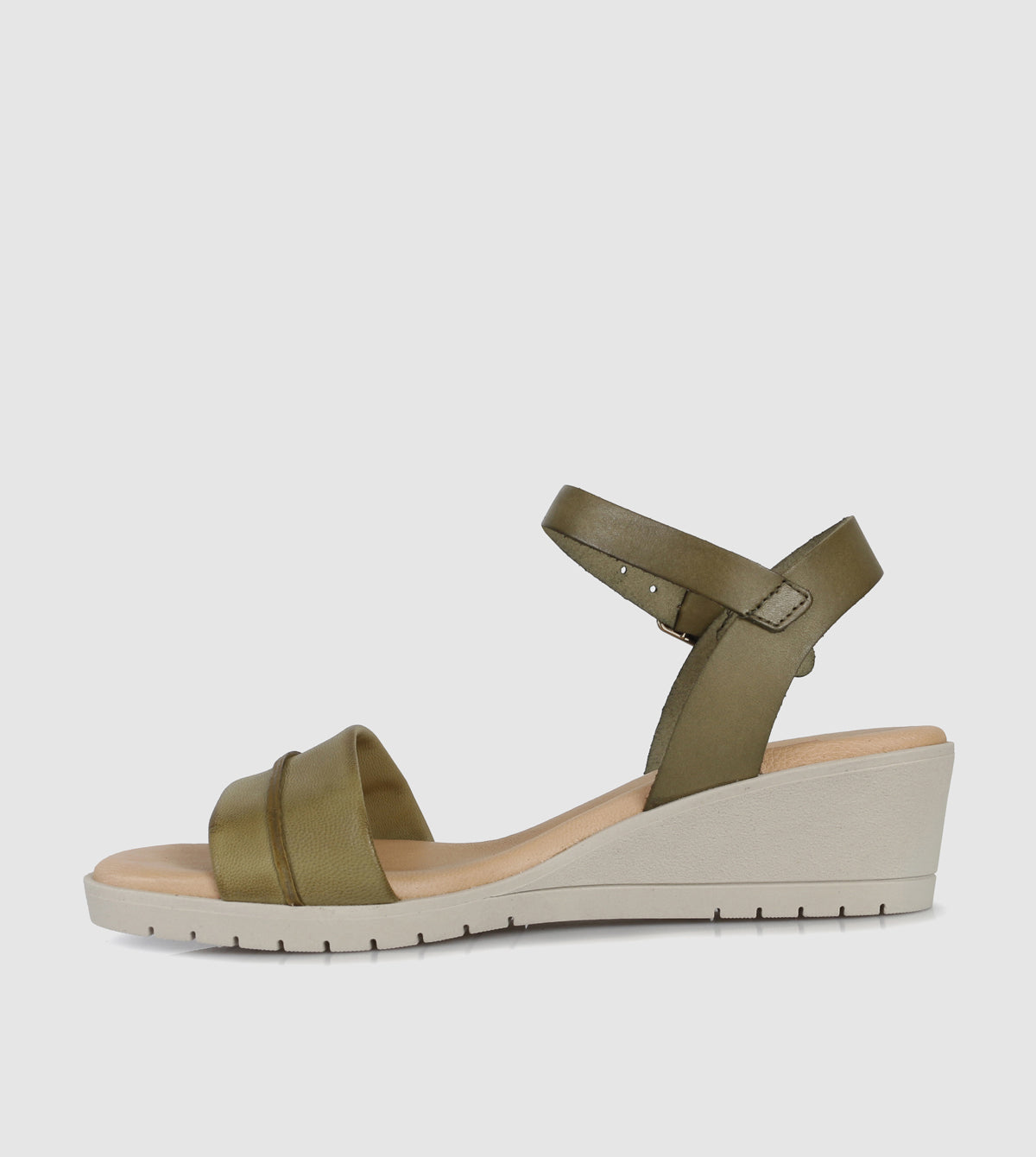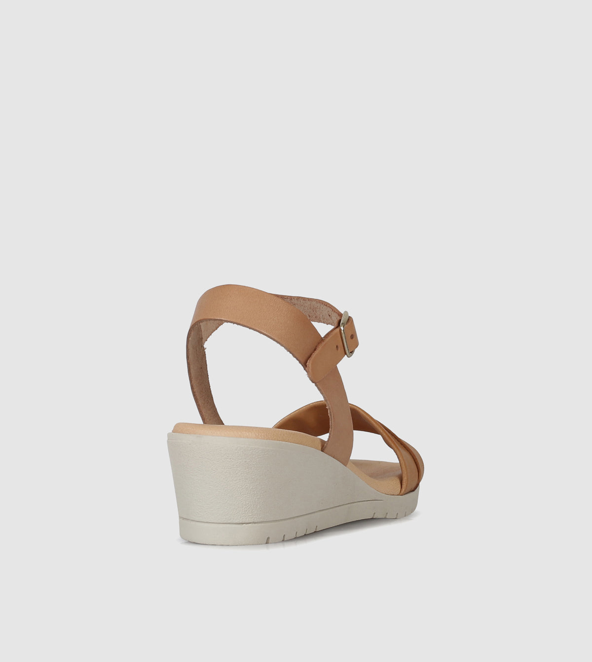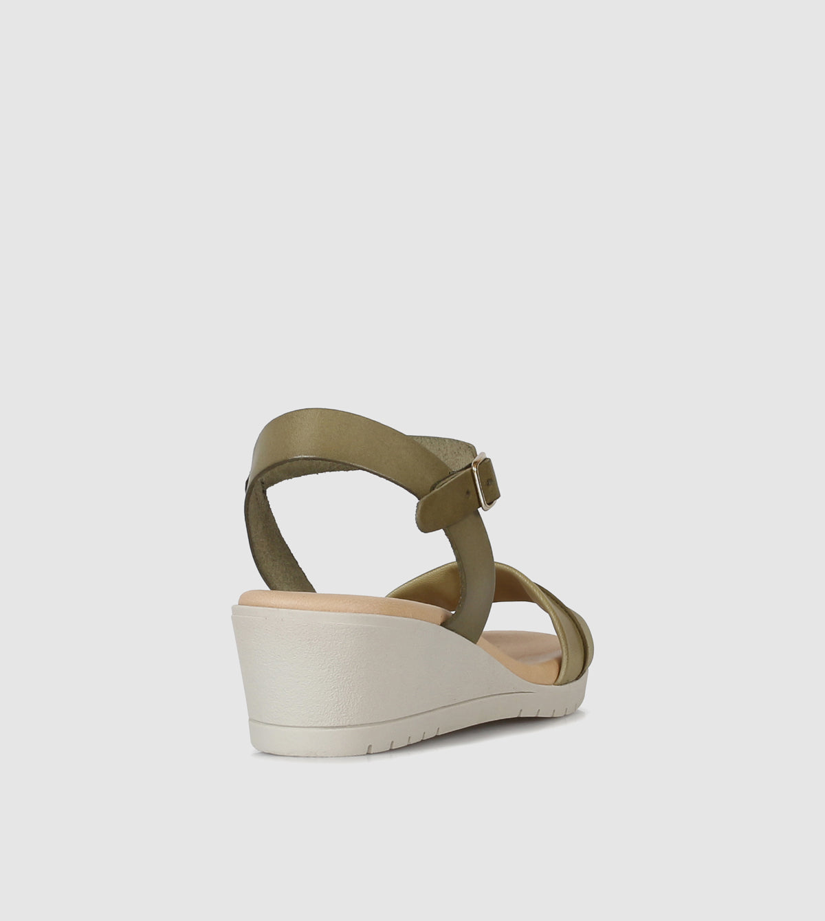 Introducing the Briel wedge sandal by Neo, a collaboration between NU and Neo, crafted with precision in Spain. Featuring a soft camel or khaki leather upper, it includes a comfortable mid-height wedge and a secure ankle strap with an adjustable buckle. The design is minimal yet sophisticated, perfect for both casual and dressy summer occasions.