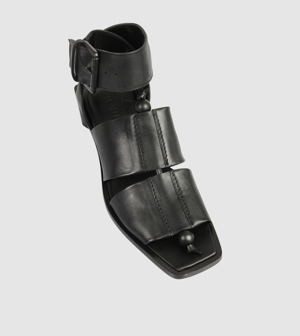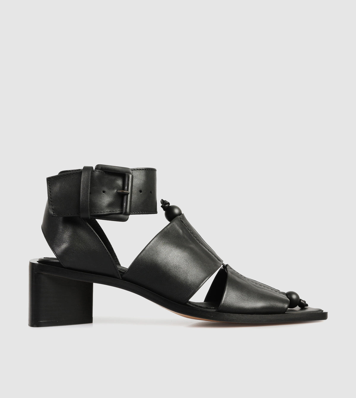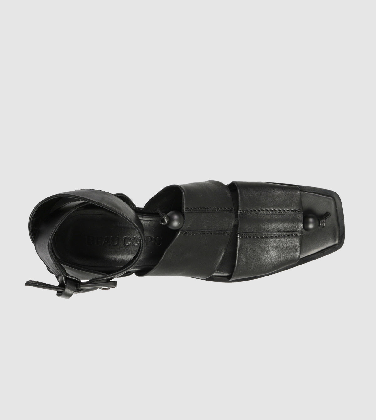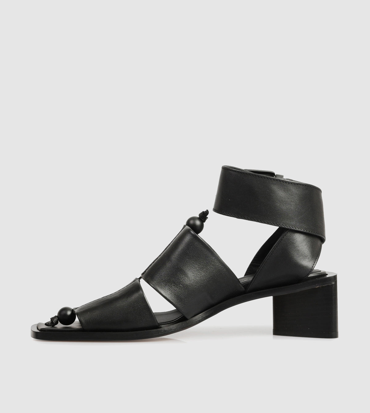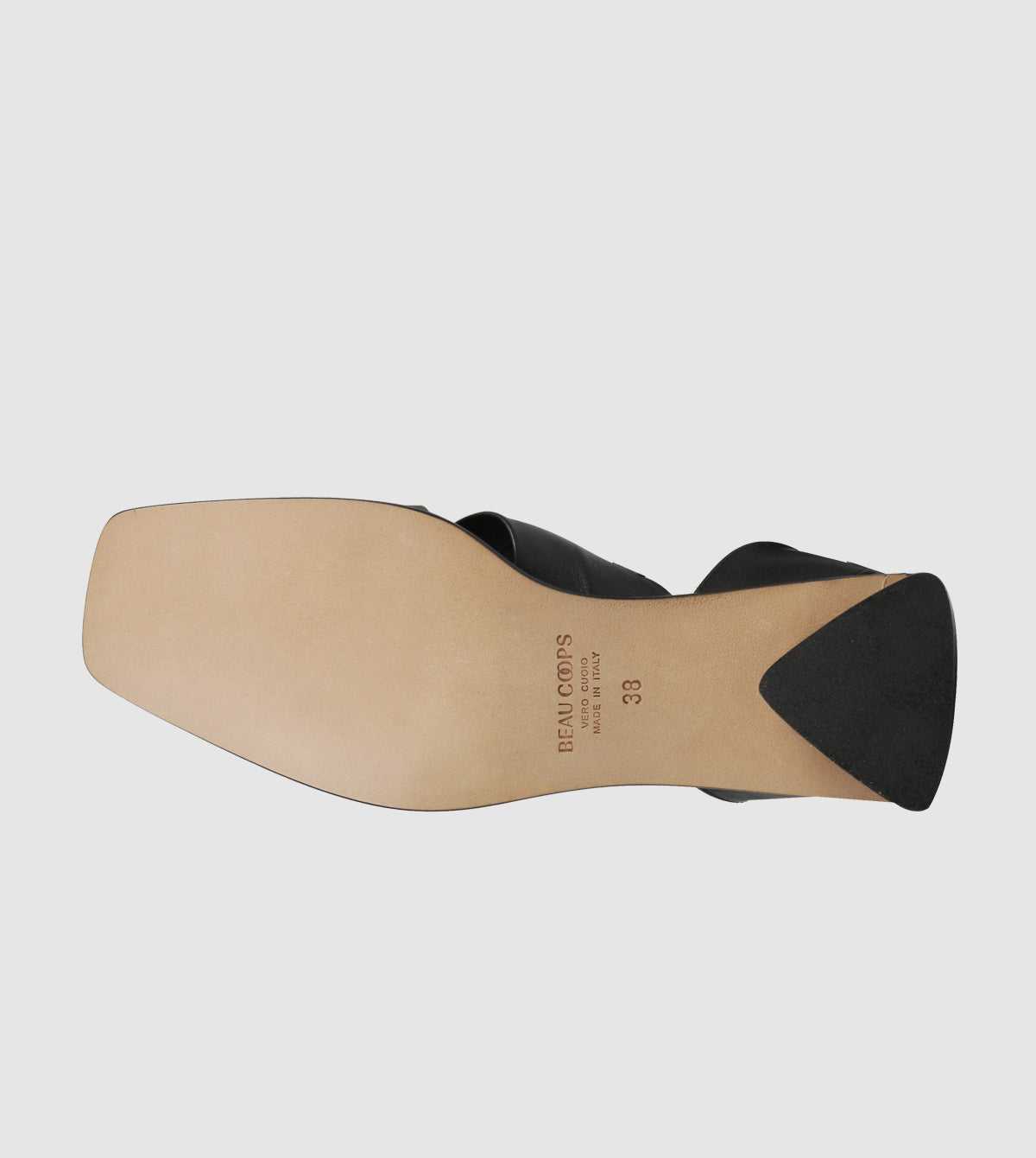 The Norma Block Sandals by Beau Coops are a must buy this season. These amazing shoes are made in Italy with the finest of leathers. A slight peep toe sits on a narrow but square toe shape, the upper consists of two straps that have a knot detail at both ends. A large ankle strap fitted with a self-covered adjustable fastening buckle will ensure your foot to be secure. The stack heel is shaped in a triangle to give these shoes the most desirable look this season.