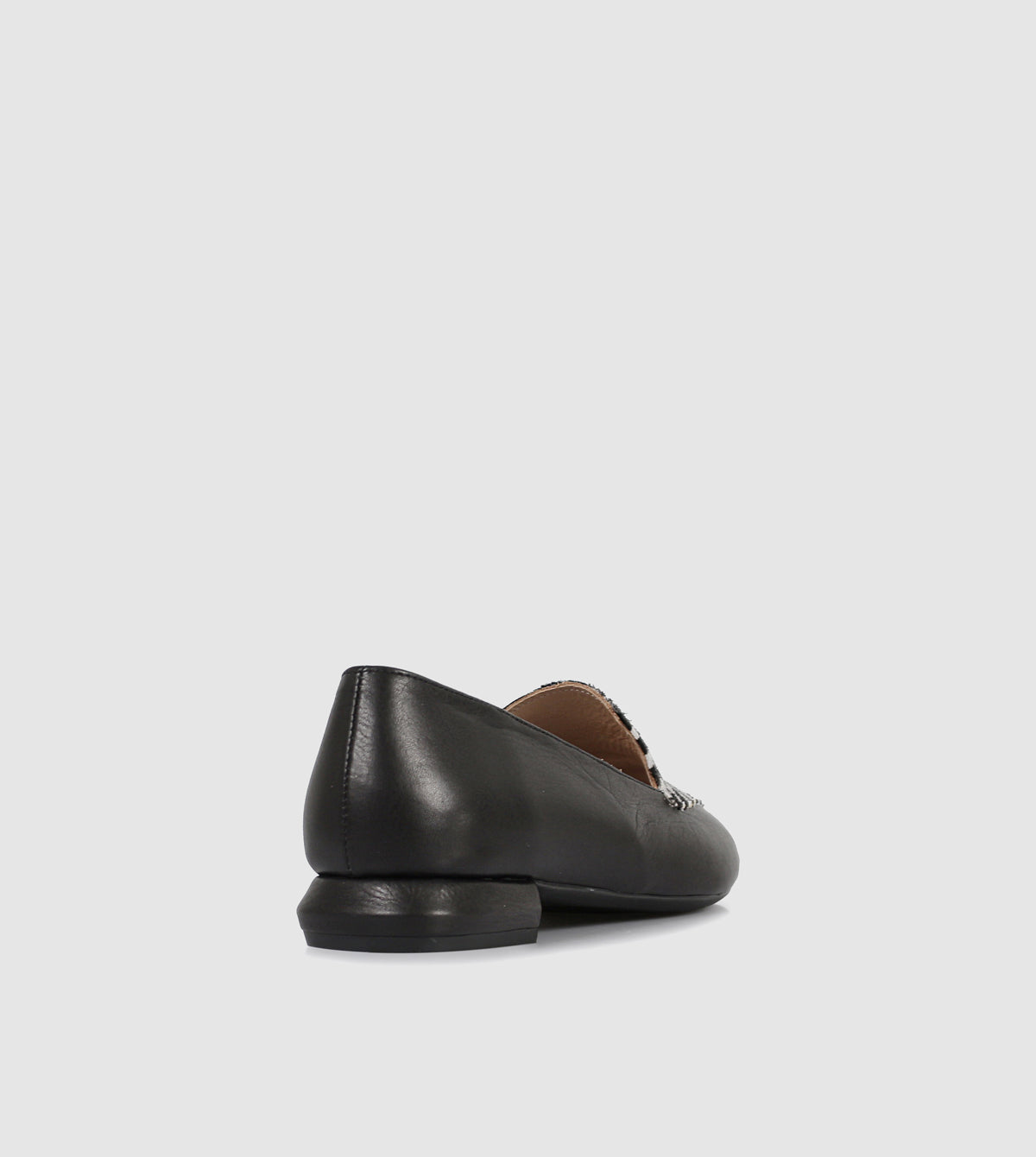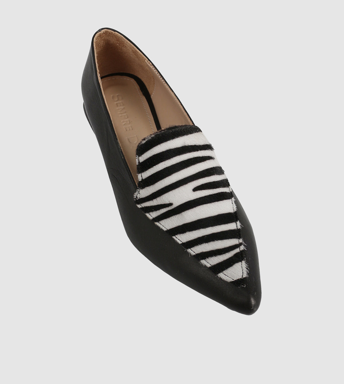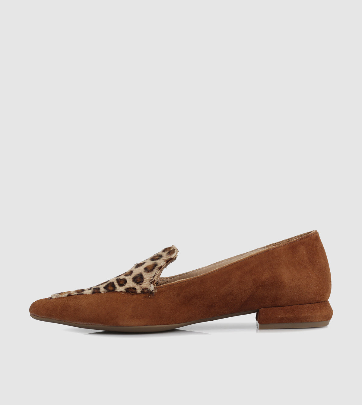 The Nylah Court Shoes by Sempre Di bring playful sophistication to classic styling. Crafted from soft suede, these flats feature a bold animal print vamp that contrasts beautifully with the smooth body of the shoe. The pointed toe adds a sharp, feminine edge, while the low-profile heel ensures all-day comfort.