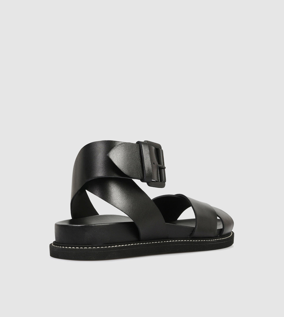 The Rona Sandals by Beau Coops are made in Italy in premium black leather. Featuring a cross over front and gladiator ankle strap with an oversized mat black buckle these are must for your summer wardrobe. The foot-bed insole will give you instant comfort. Wear them with your Jeans, Cropped pants and midi dresses.