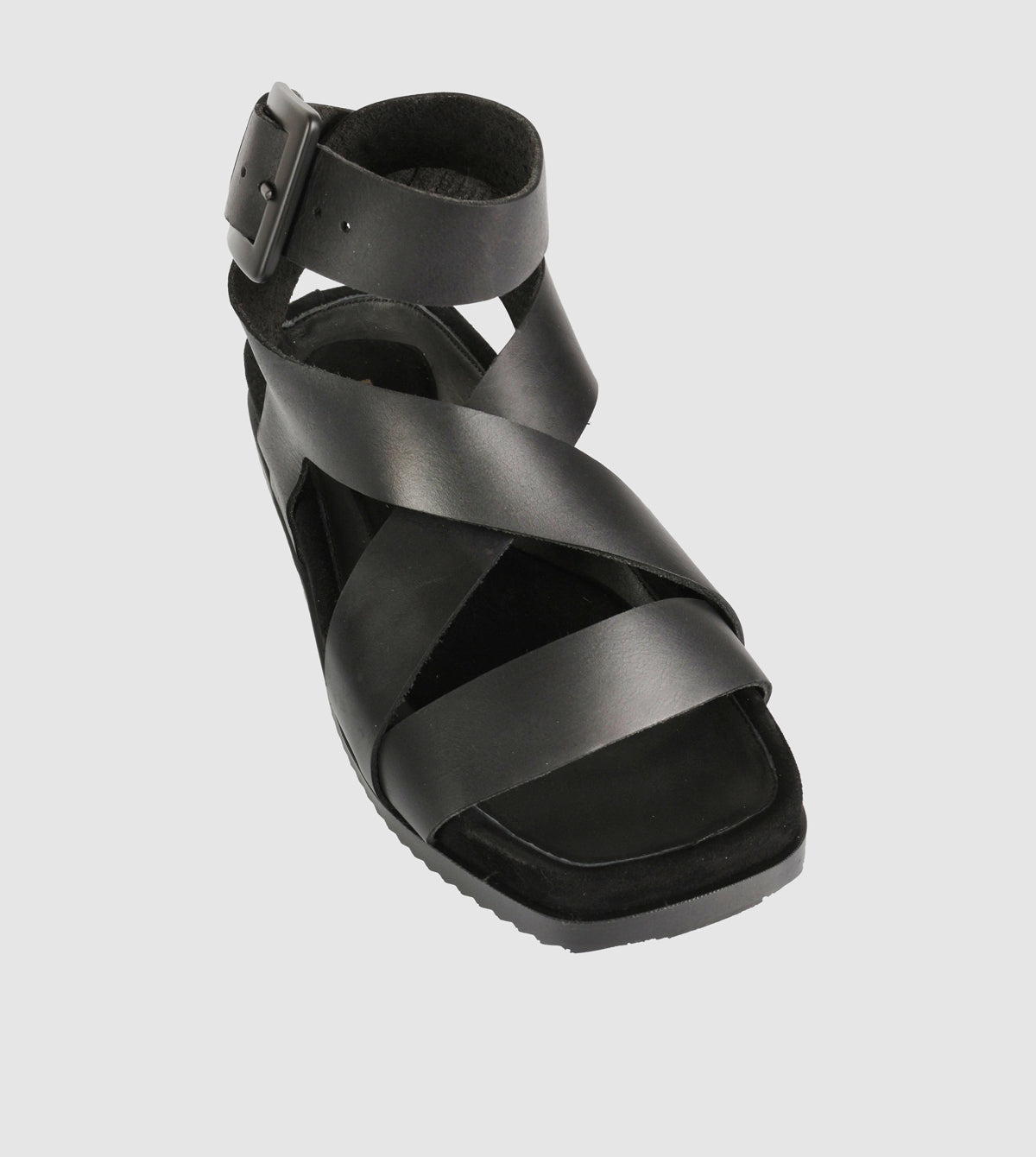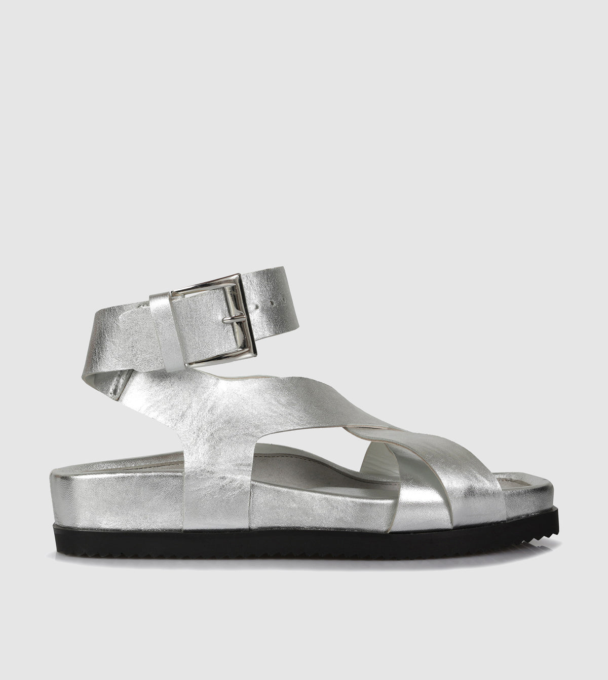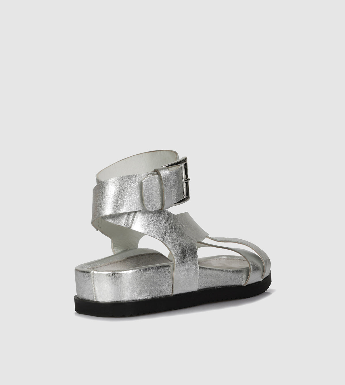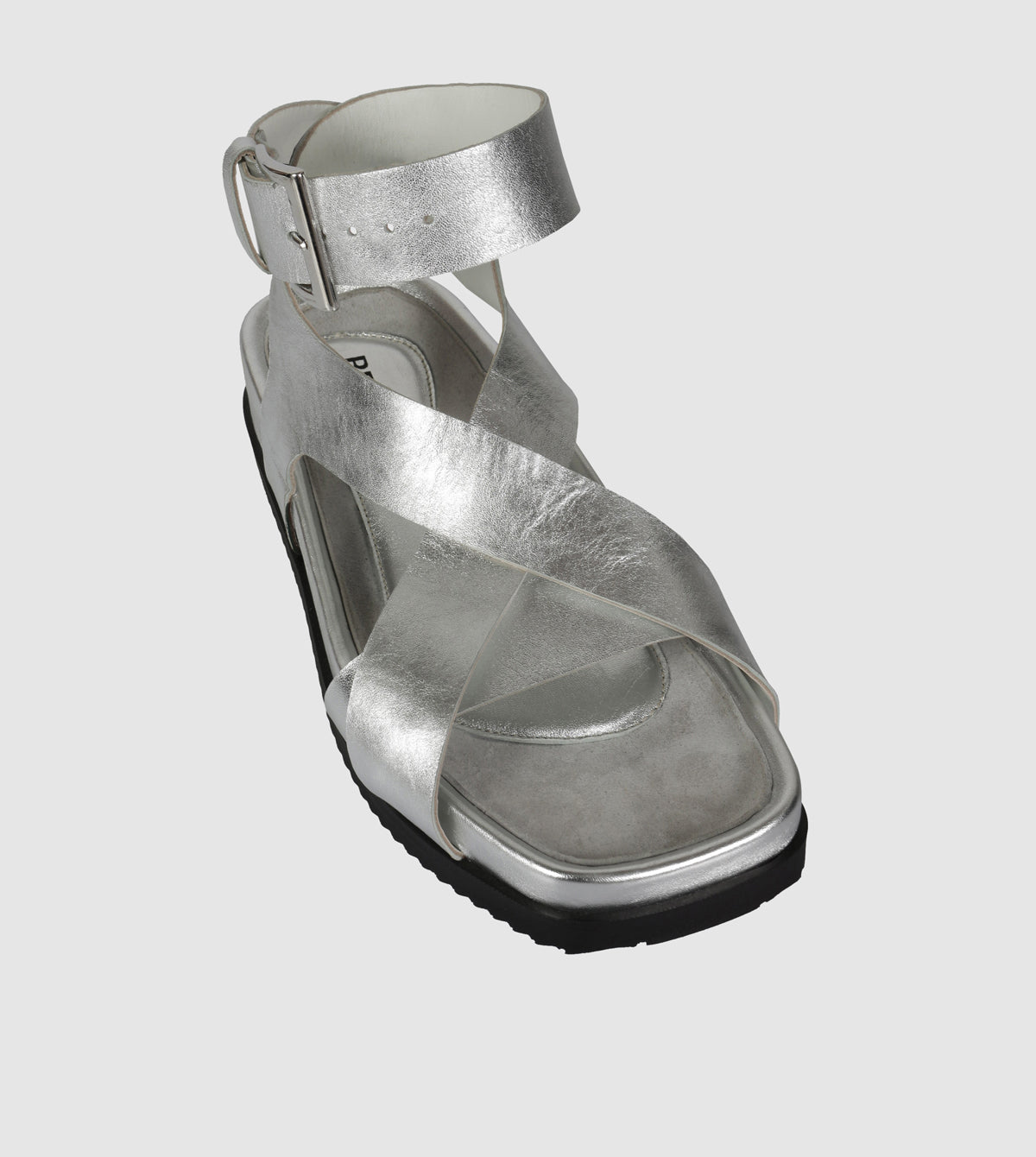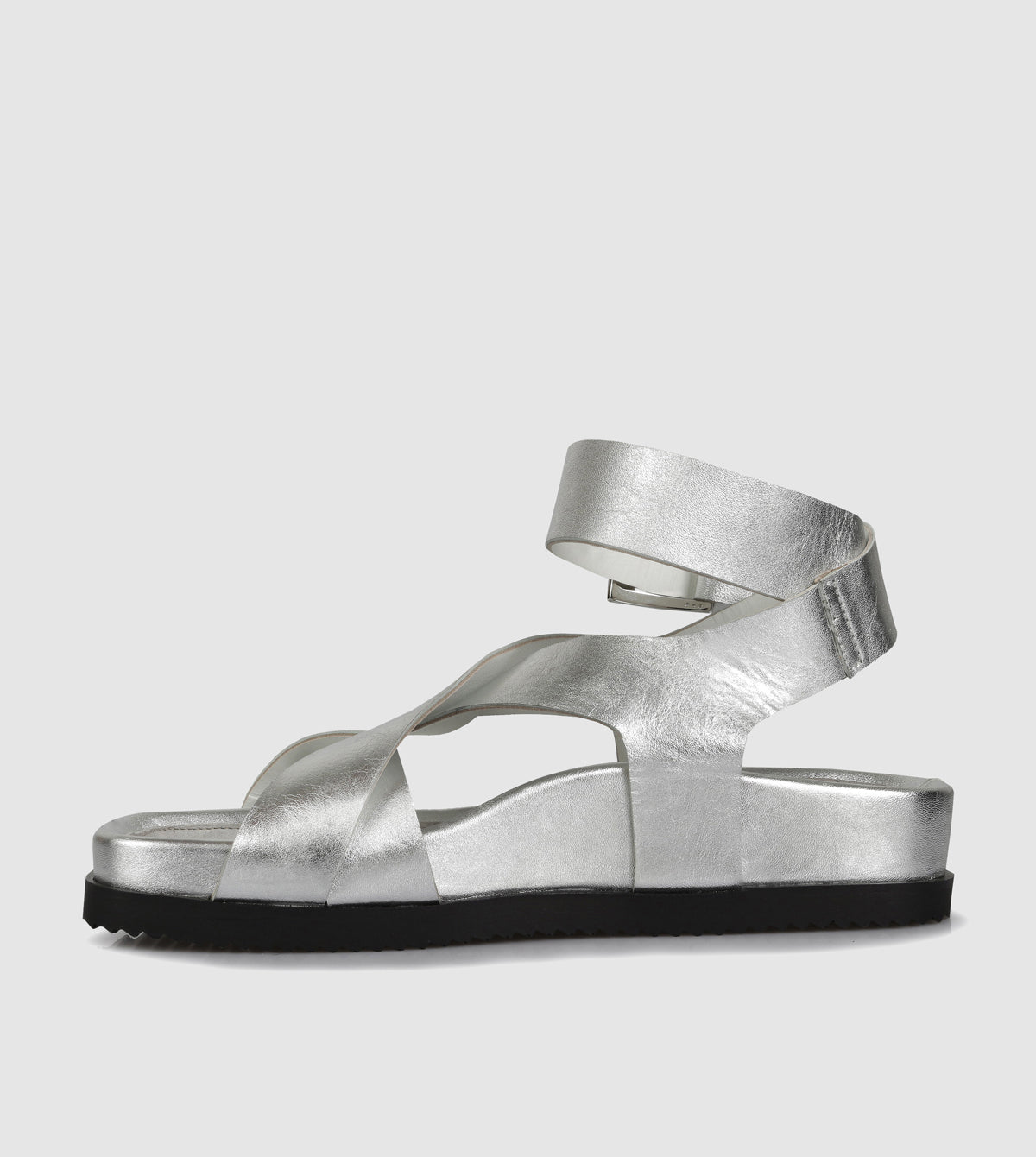 An exciting and modern take on the gladiator silhouette, the Valen Sandals by Beau Coops are made in Italy from the finest leathers and featuring a crossover strap design and adjustable ankle strap wrap around design, lifted footbed, non-slip rubber sole and square toe shape. Offered in a sophisticated all-silver or all-black option. A statement yet casual look that completes any outfit.