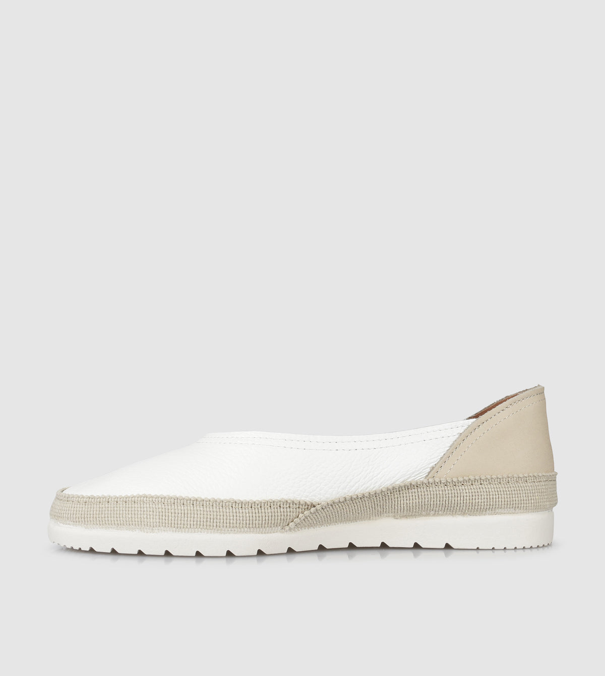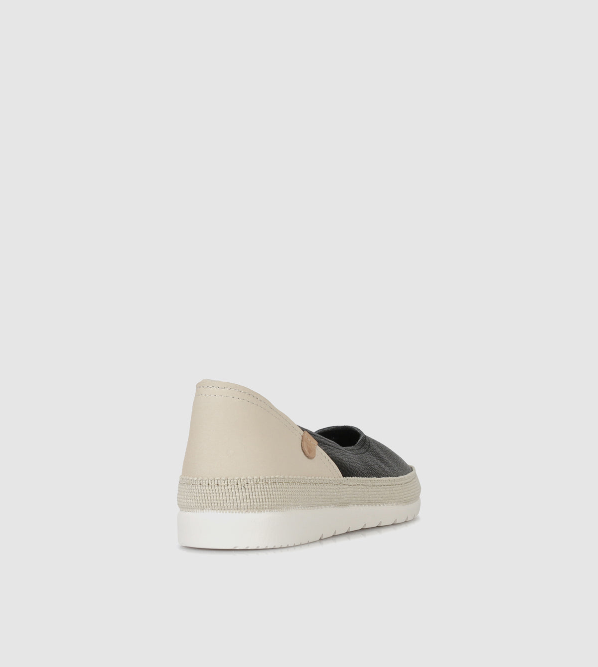 The Noelia slip-ons by Neo, crafted in Spain, combine casual comfort with effortless style. Featuring a streamlined design, these flats are made from soft leather and come in versatile shades of white, navy, black or metallic gold. With a durable, slightly rugged sole and subtle espadrille-inspired trim, the Noelia flats offer a chic yet laid-back look.