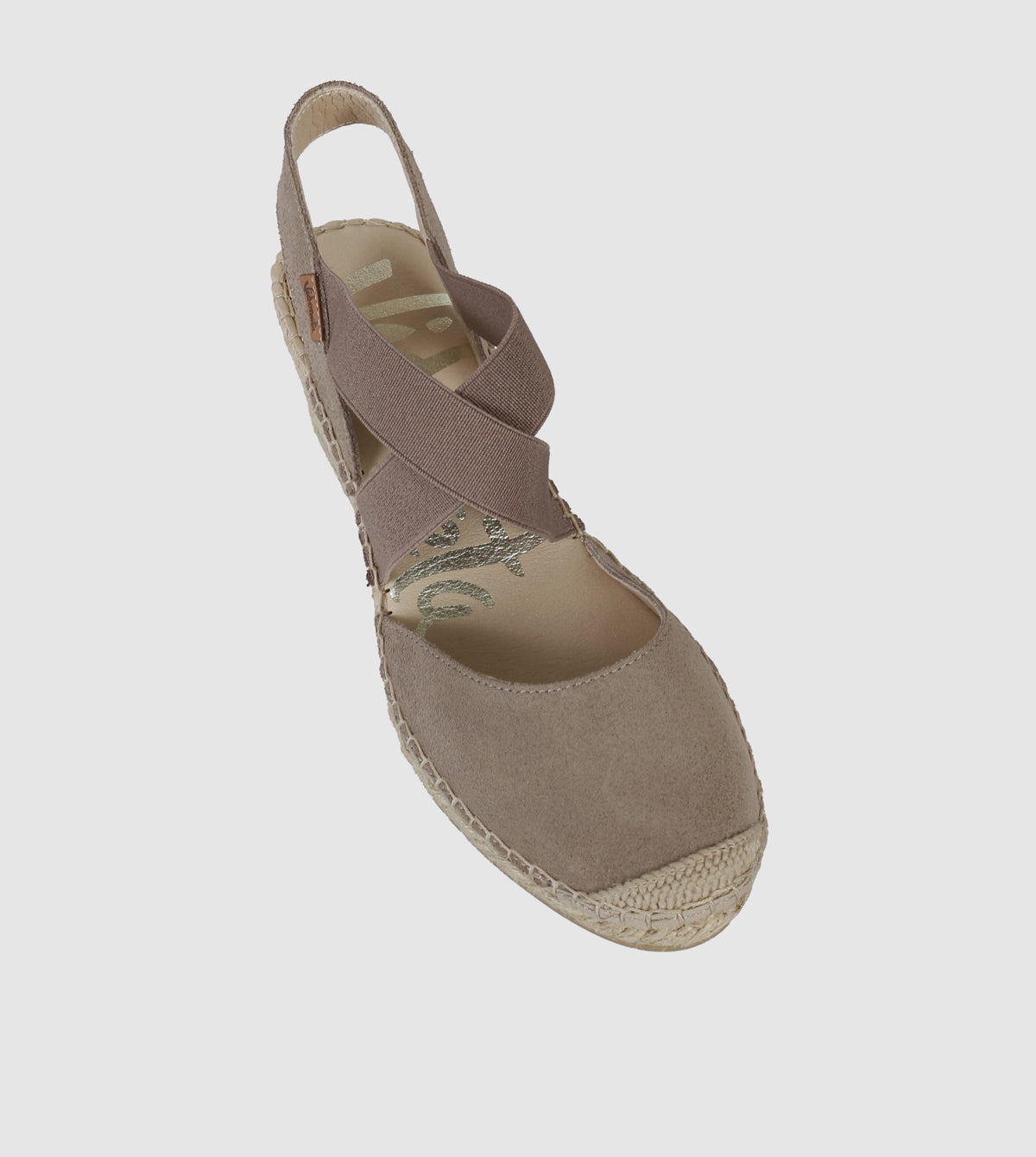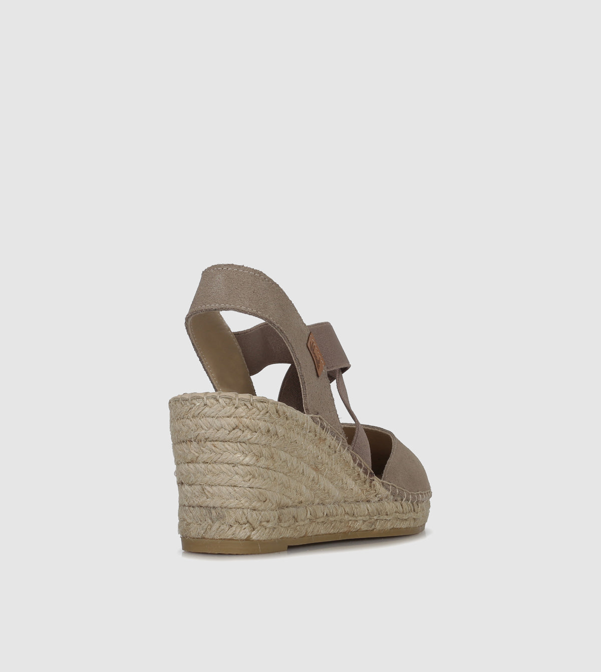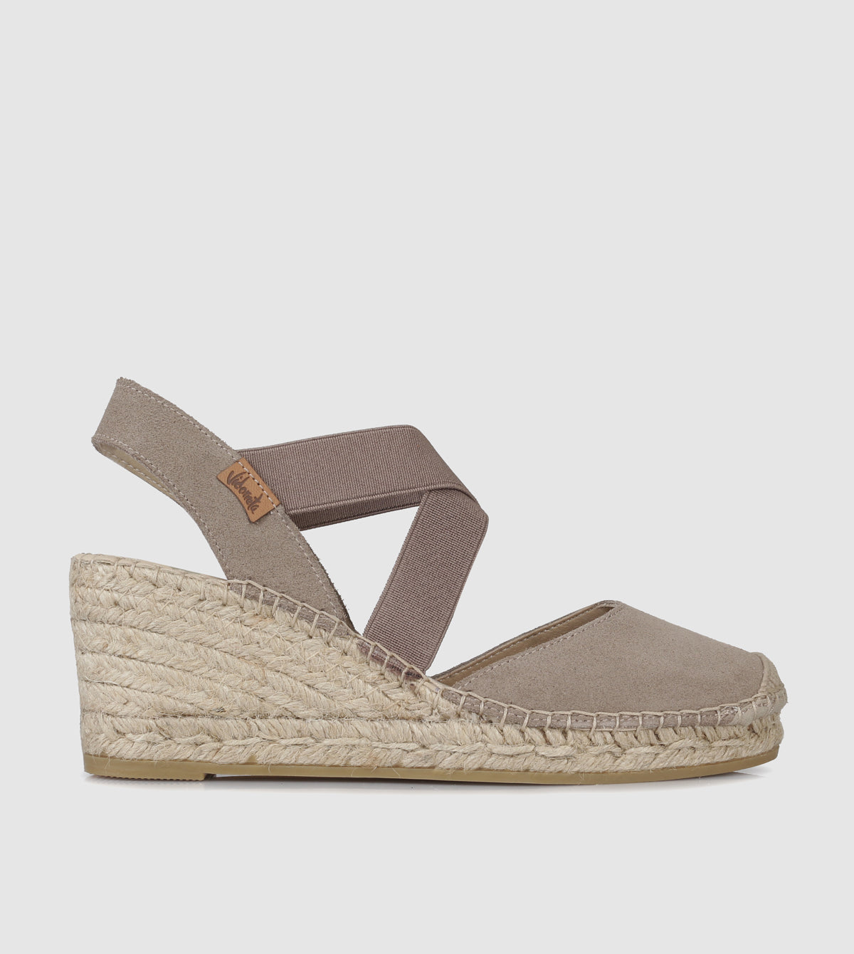The Pola wedge sandal by Vidorreta is beautifully crafted in Spain, featuring a classic espadrille design that’s both stylish and versatile. Made with a suede upper and signature jute wedge, it’s an ideal choice for summer outings. The cross-strap elastic ensures a comfortable fit, making it easy to slip on and off. Available in taupe, navy, and tan.