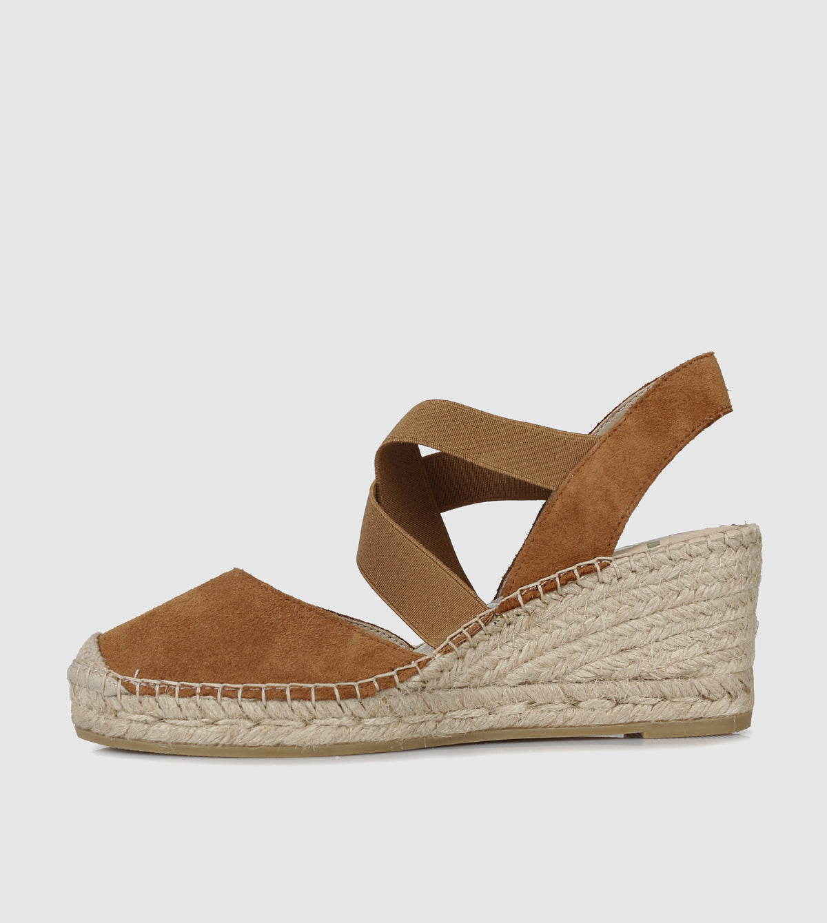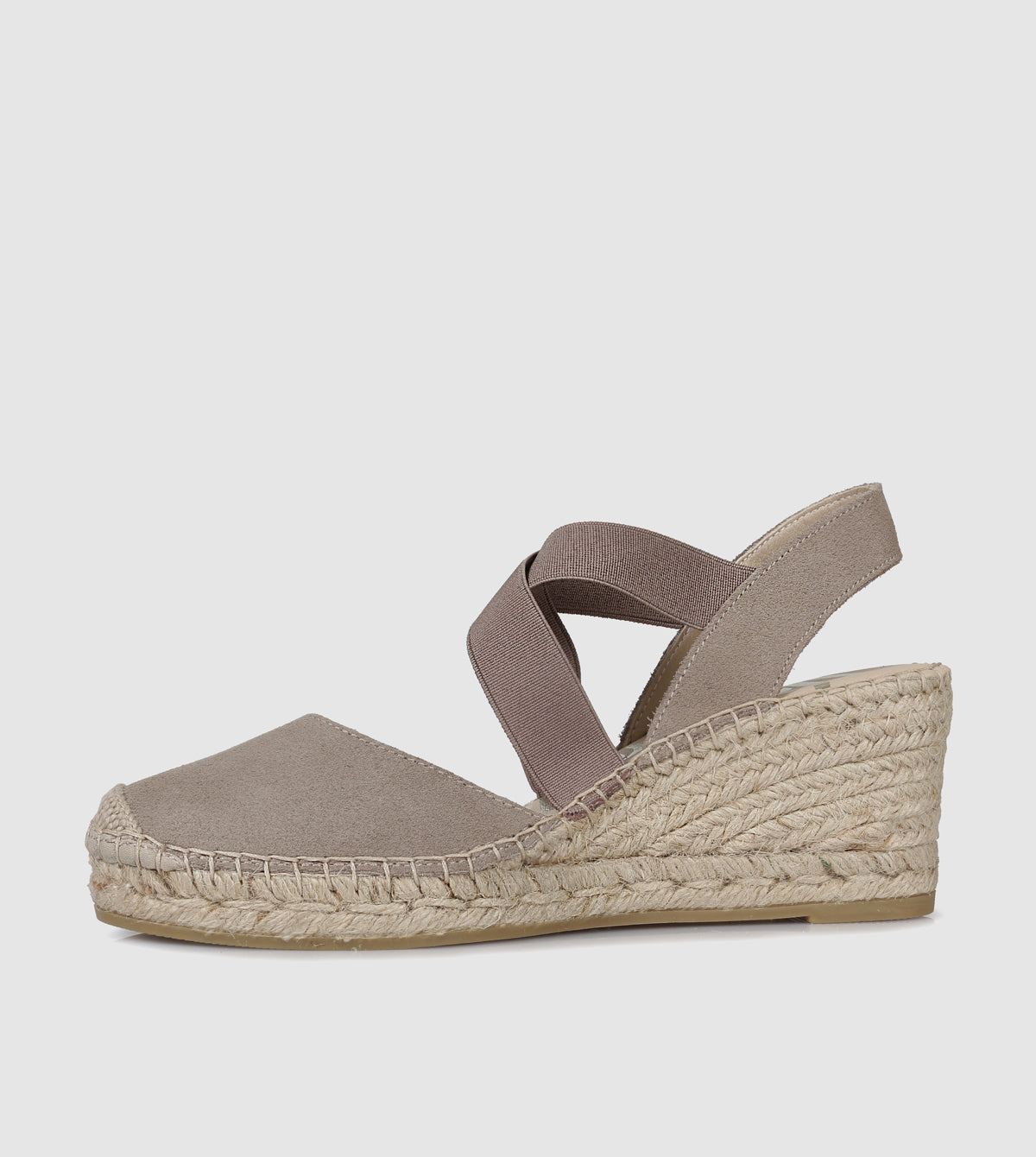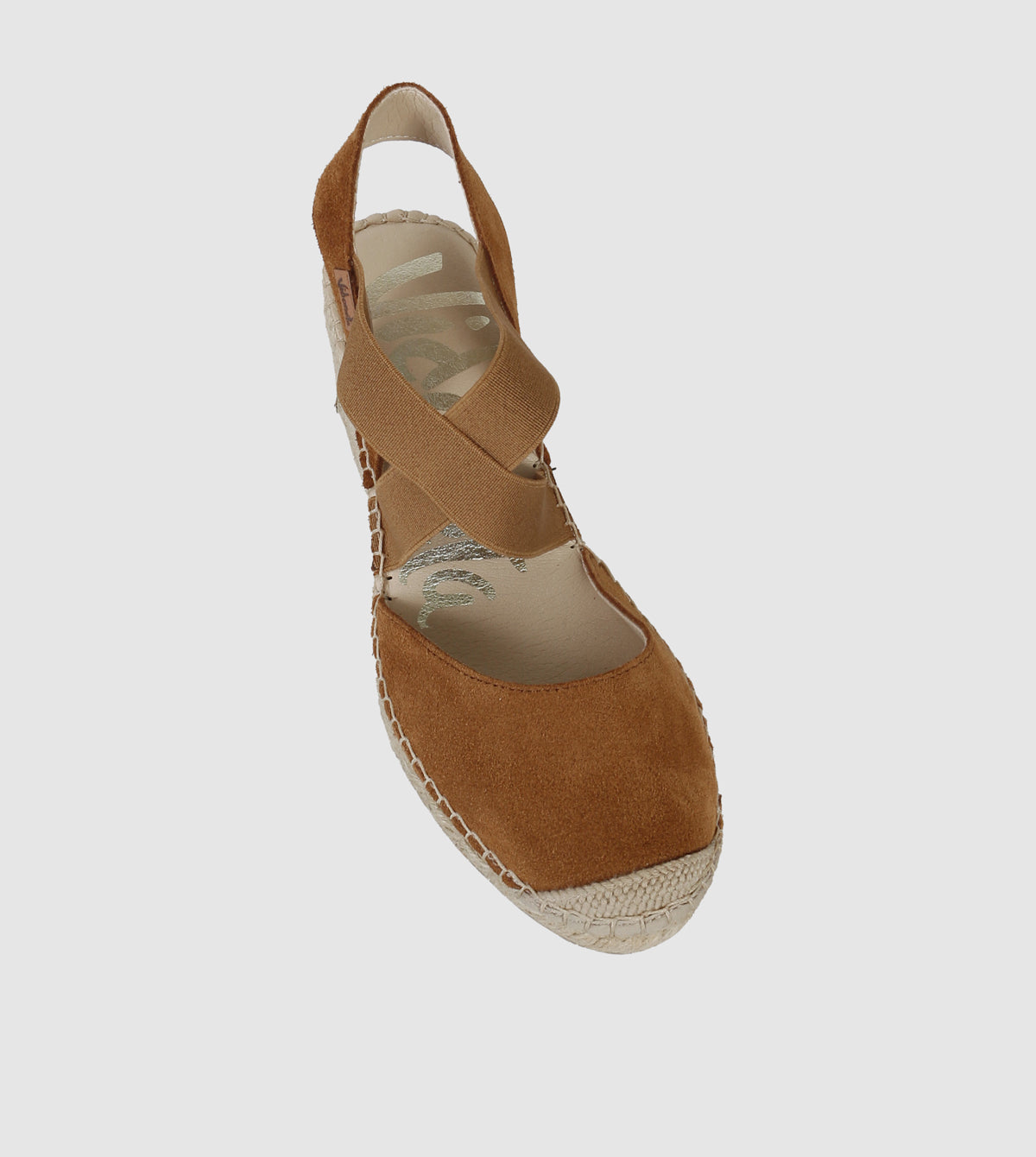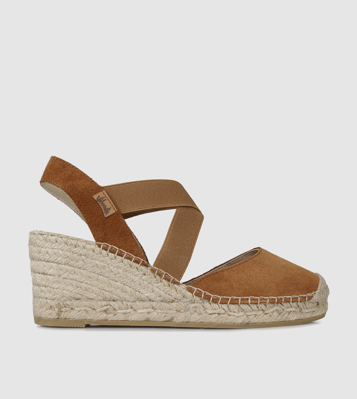 The Pola wedge sandal by Vidorreta is beautifully crafted in Spain, featuring a classic espadrille design that’s both stylish and versatile. Made with a suede upper and signature jute wedge, it’s an ideal choice for summer outings. The cross-strap elastic ensures a comfortable fit, making it easy to slip on and off. Available in taupe, navy, and tan.